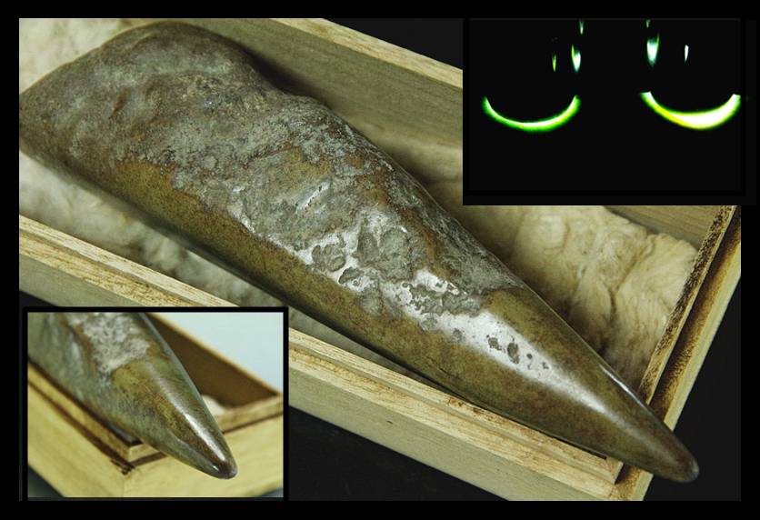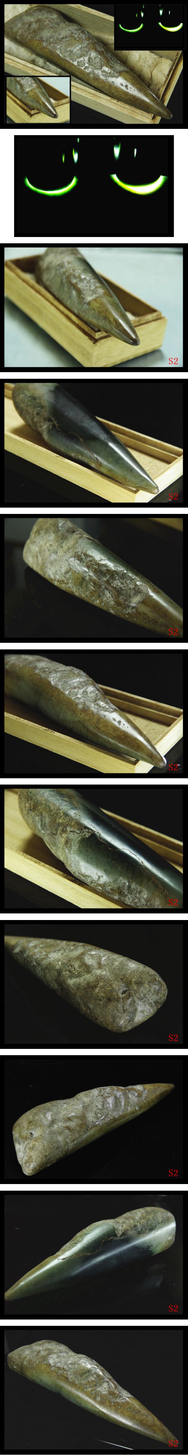 【S2】古墳期★表面風化★古色濃ゆい緑色付き極上古玉製★特大型20.4cm石棒石鏃石斧石器★検古墳弥生須恵器出土器土偶祭祀具原石根付