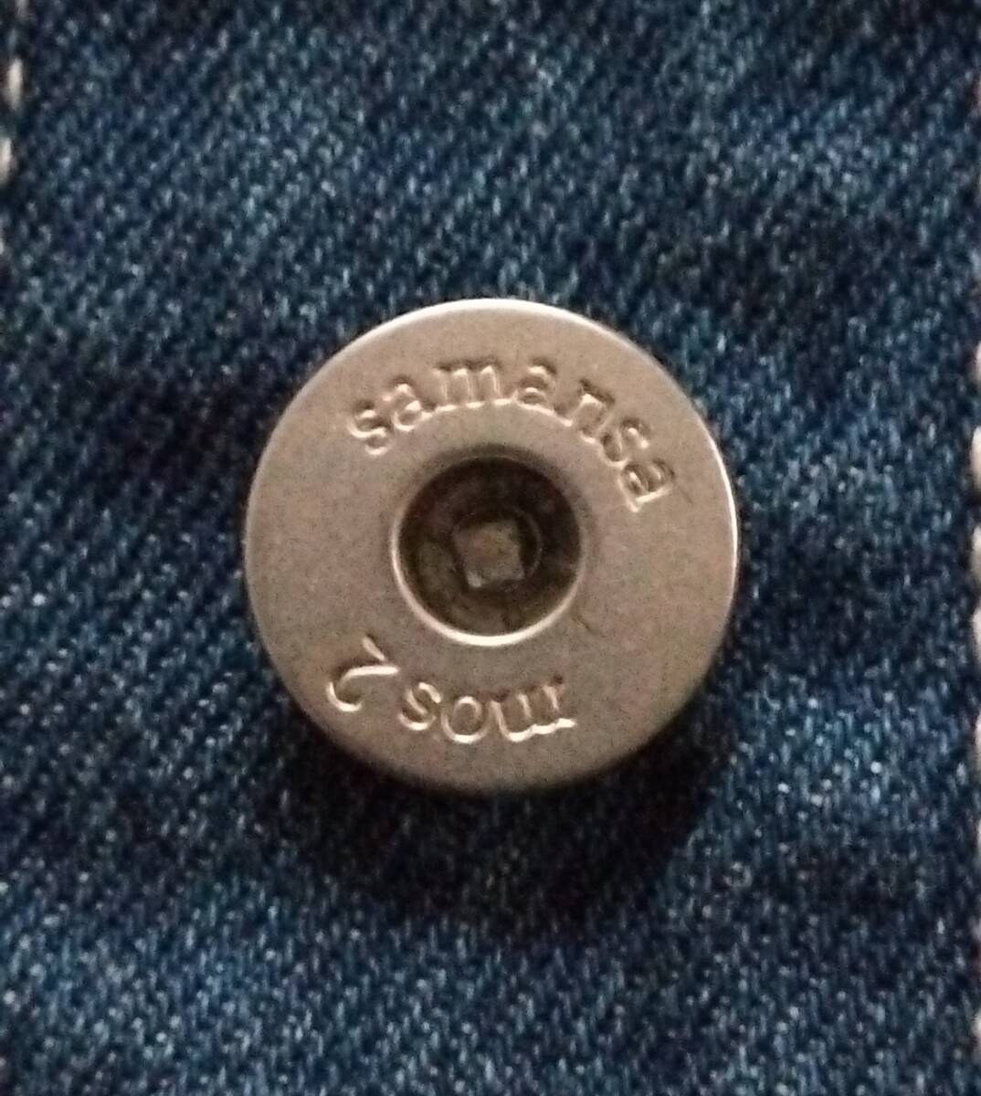 リベットボタンには一つ一つブランド名が刻印されており、フロントにはタックが寄せられていて、とても凝ったお作りになっています。