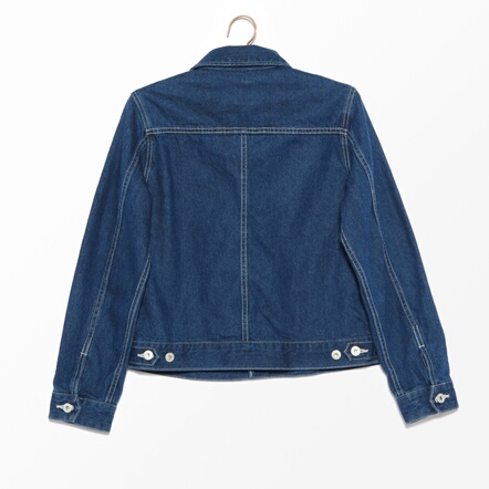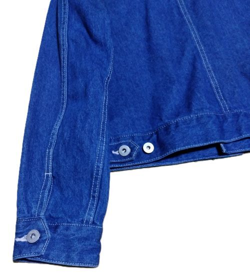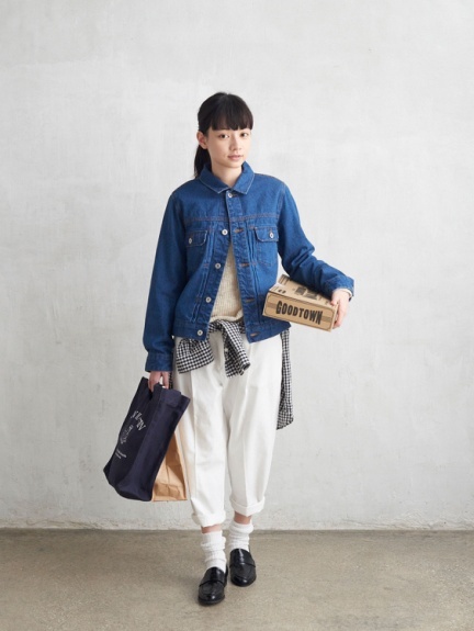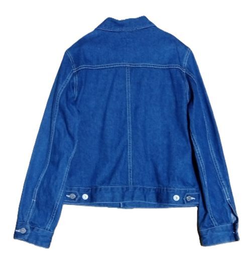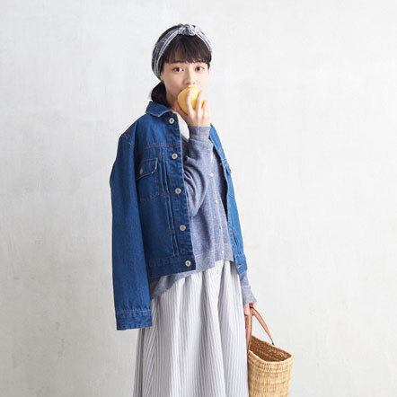 オーソドックスなブルーのデニム生地でコンパクトに仕立てられており、華奢見えして女性らしいフォルムです。