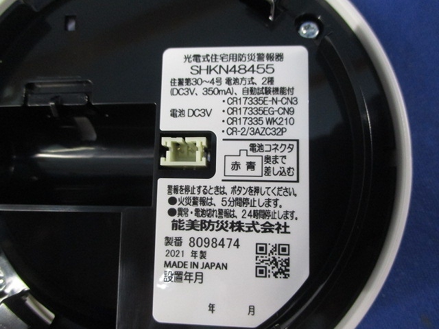 光電式住宅用防災警報器(21年製)(未使用品) 能美防災 SHKN48455