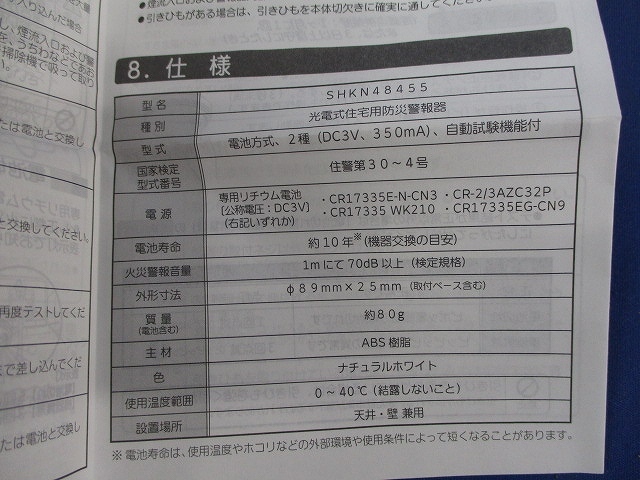 光電式住宅用防災警報器(21年製)(未使用品) SHKN48455