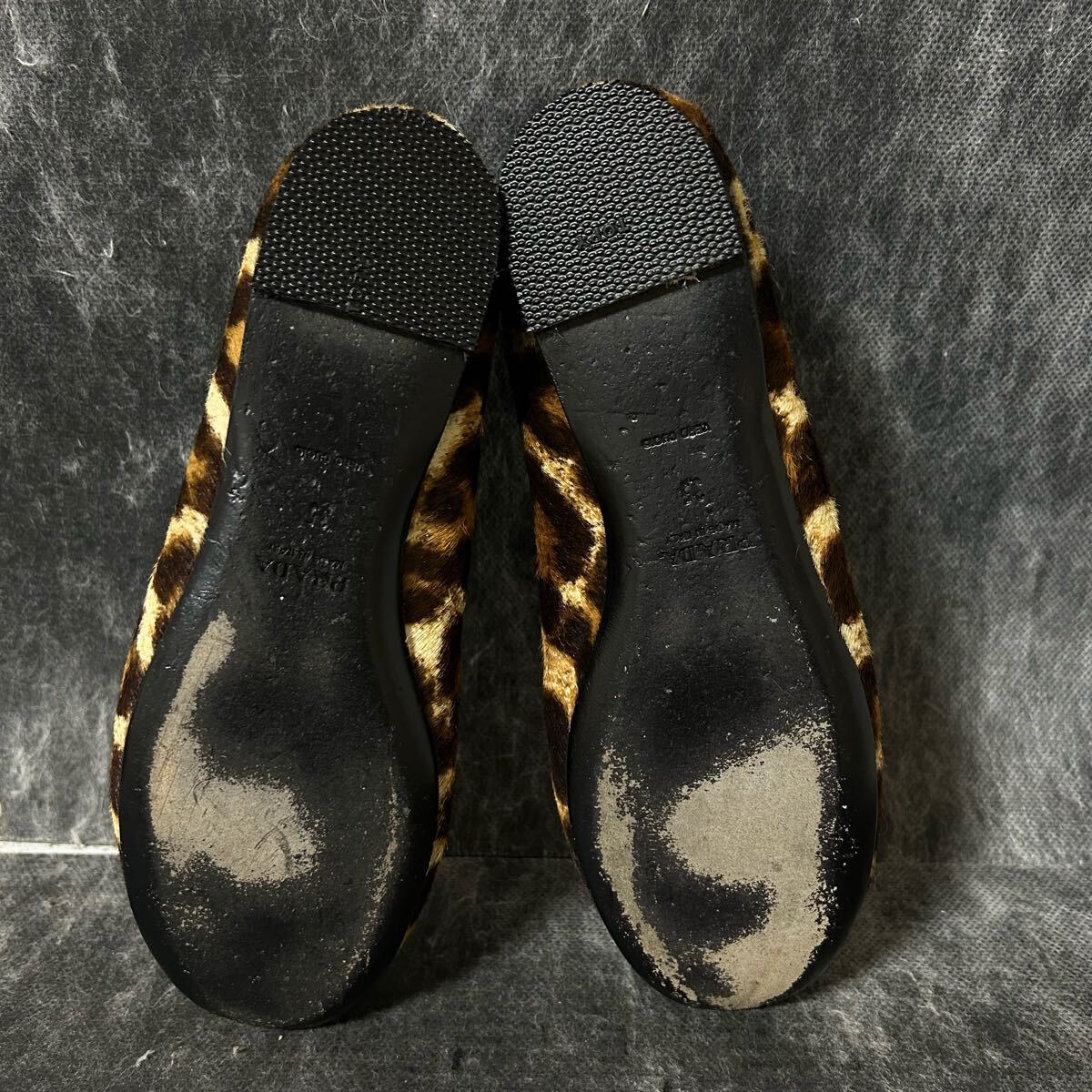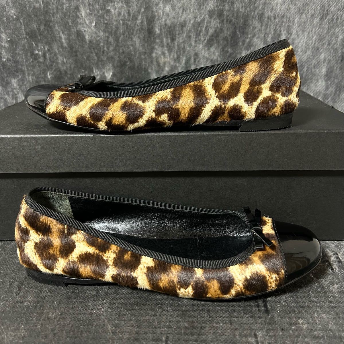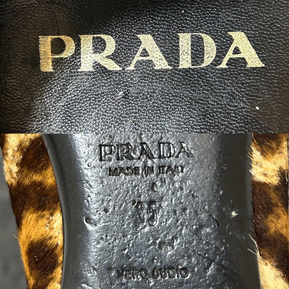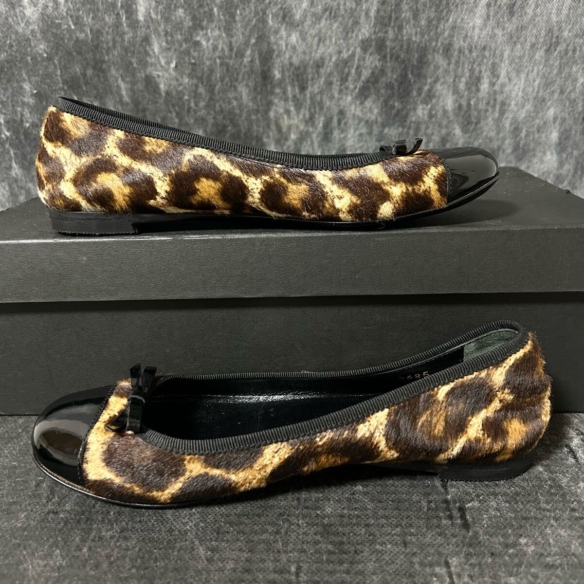PRADA プラダ フラットシューズ  リボンパンプス エナメル×ハラコ ヒール新品 レオパード 35 22cm相当 ブラウン *Ei