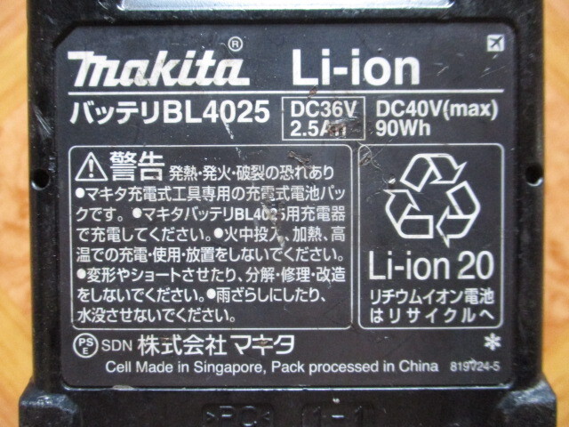 マキタ Makita バッテリー 40V 2.5Ah BL4025 ジャンク品