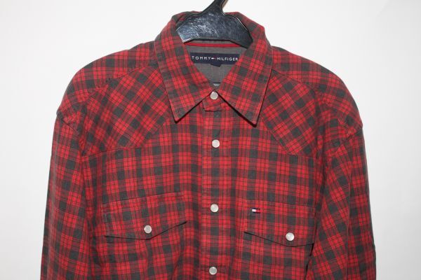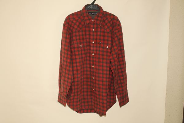 4037**SP-L:トミー、赤黒系、長袖シャツ、若干厚地