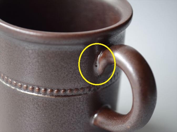 小さなピンホール(針で突いたような点)や縁に点状の釉薬ロスのような箇所がみられるカップがございます。他、使用感ございますが目立つ汚れやダメージは見られません。