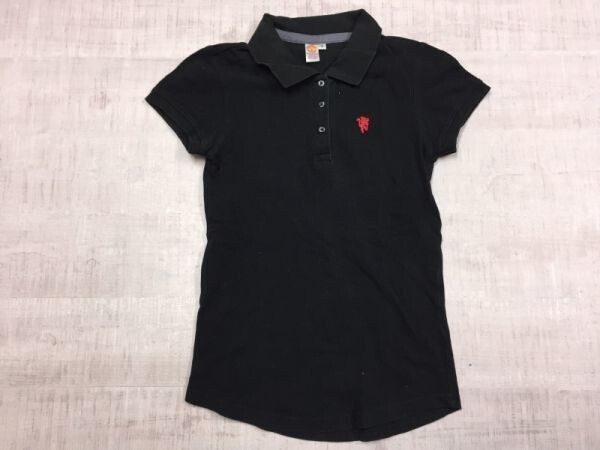 マンチェスターユナイテッド MANCHESTER UNITED FC 名門サッカークラブ プレミアリーグ 鹿の子 半袖ポロシャツ レディースS 黒