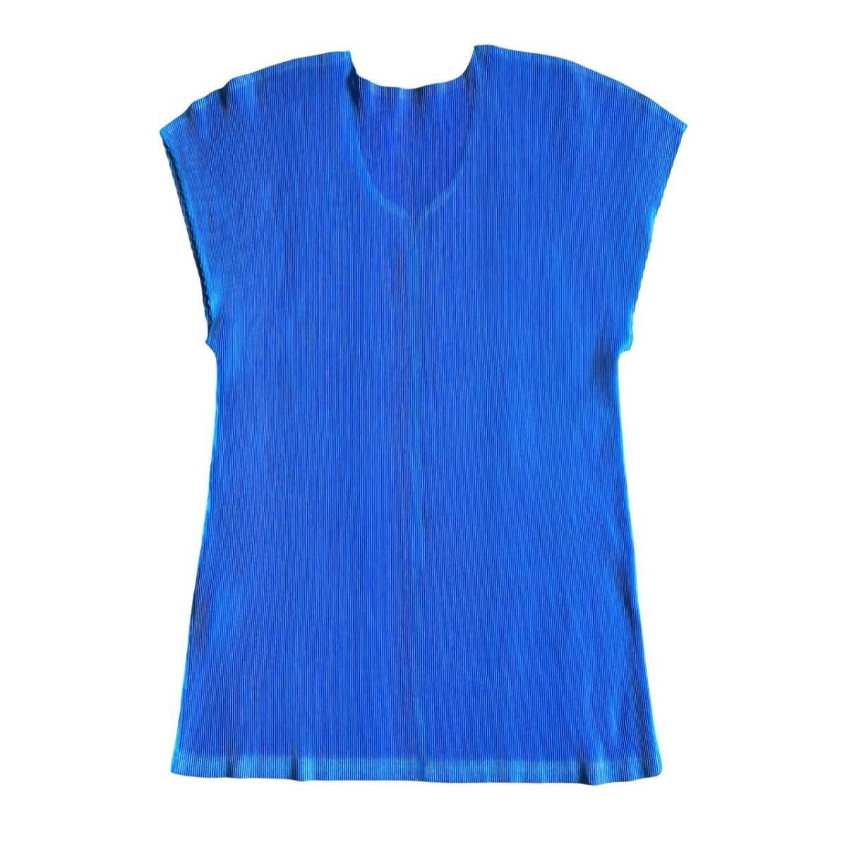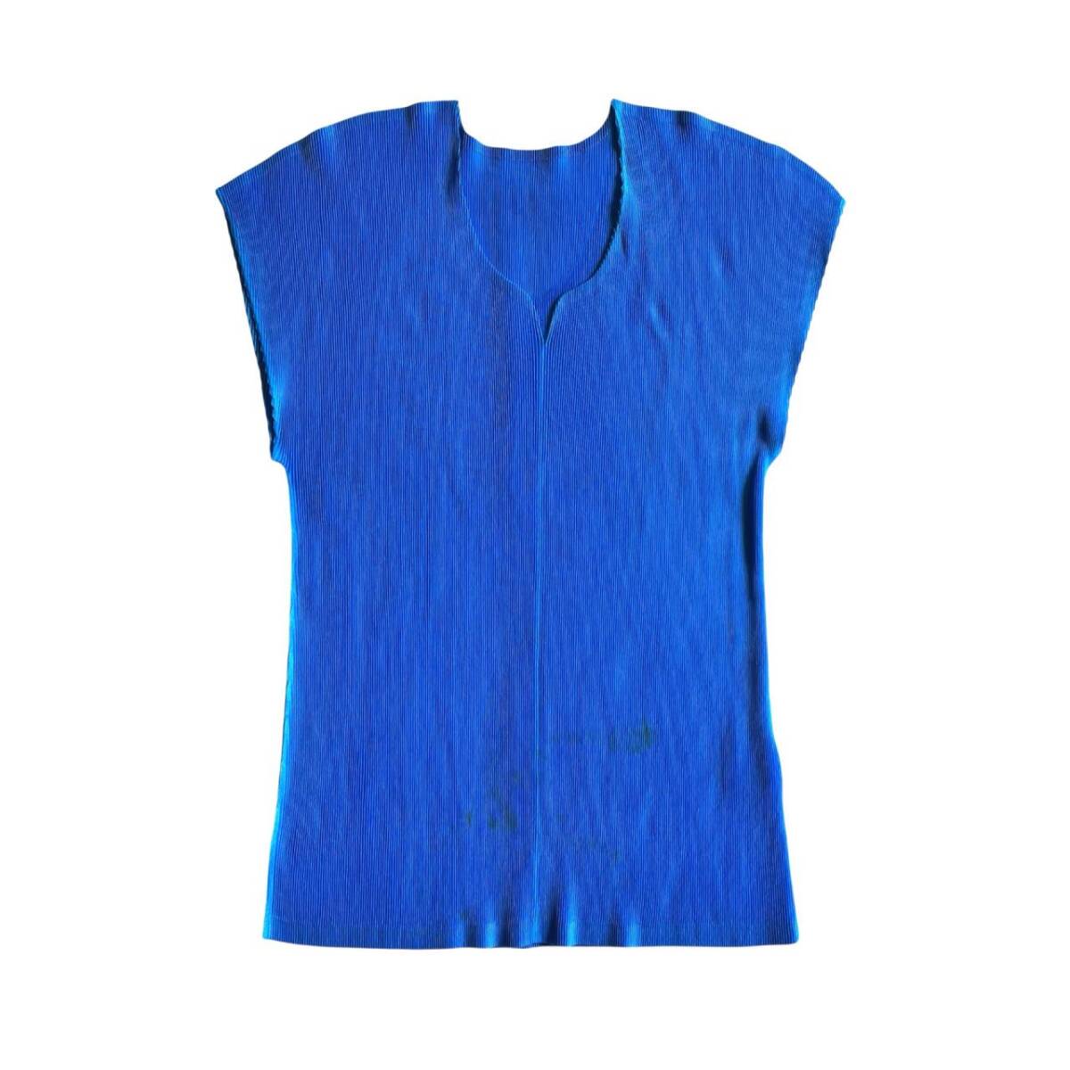 ISSEY MIYAKE イッセイミヤケ プリーツプリーズ トップス PP91FK352 サイズ:3 ブルー系 シミ有 半袖Tシャツ |