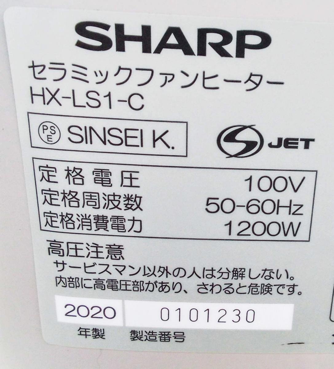 [動作OK] SHARP シャープ セミックファンヒーター HX-LS1-C 2020年製プラズマクラスター 暖房