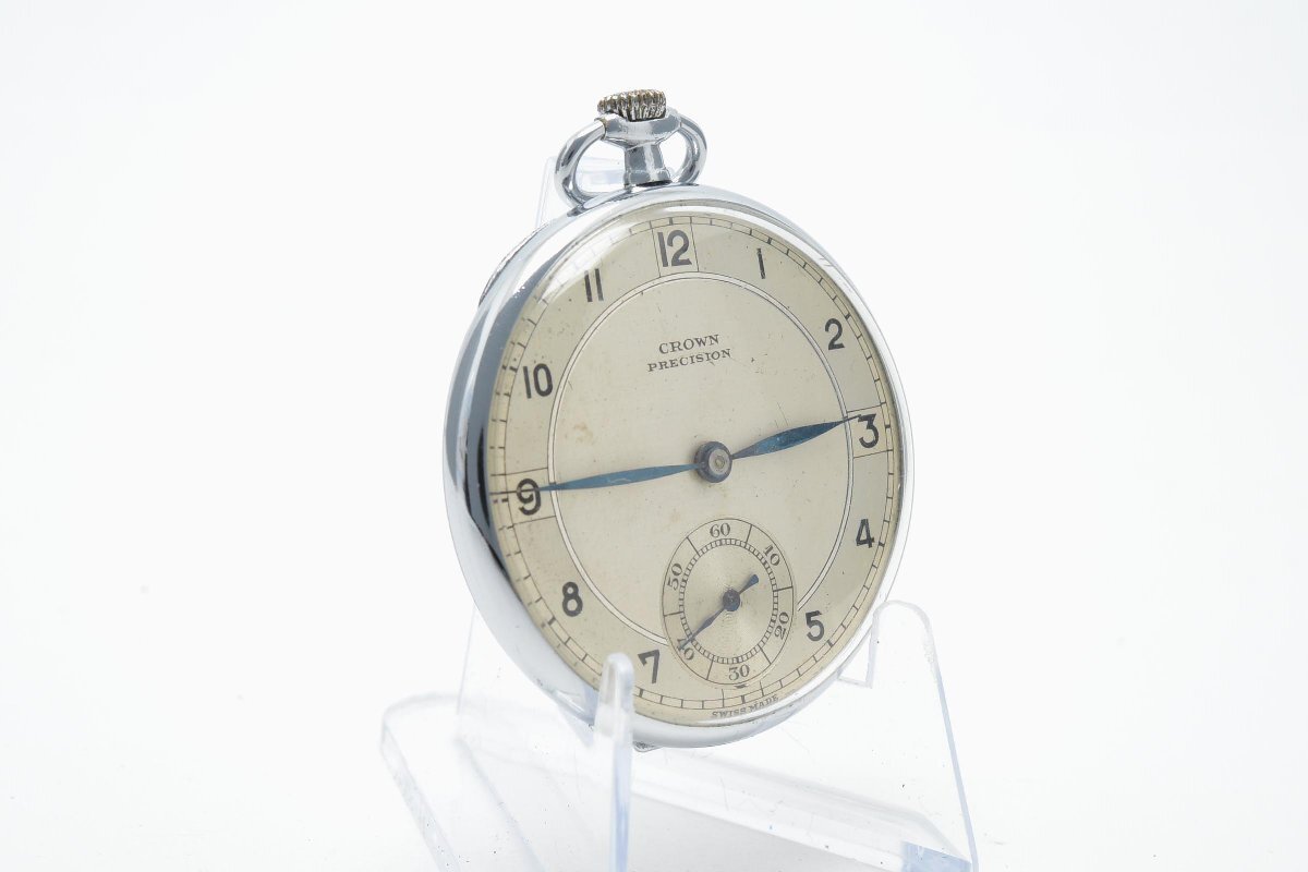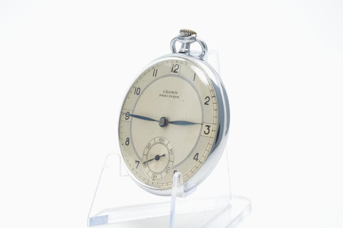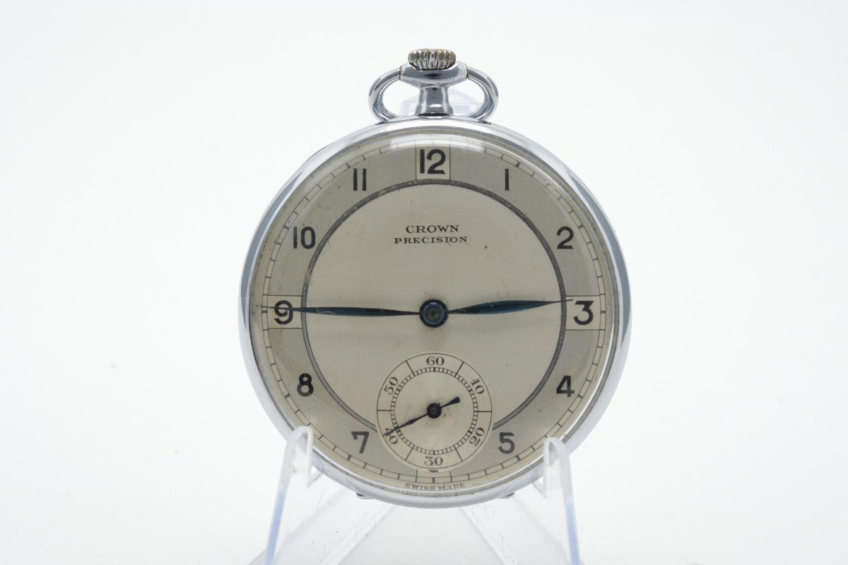 CROWN クラウン PRECISION 懐中時計 銀 シルバー Silver ラウンド ゴールド文字盤 3針 手巻き