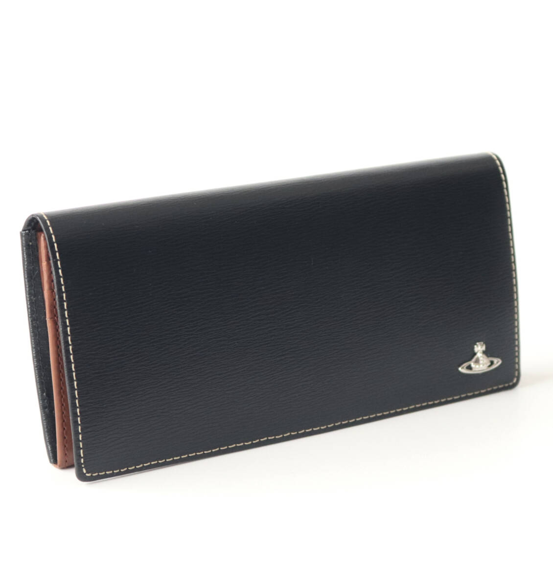 新品箱付き【ヴィヴィアンウエストウッド】上質牛革 かぶせフラップ長財布 黒 v7555-484-12 プレゼントにも最適 |