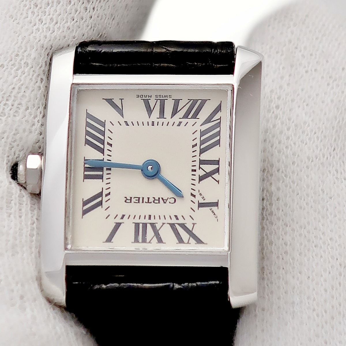カルティエ タンク フランセーズ SM W5001256 K18WG無垢 角型 アイボリー ローマン 青針 クオーツ