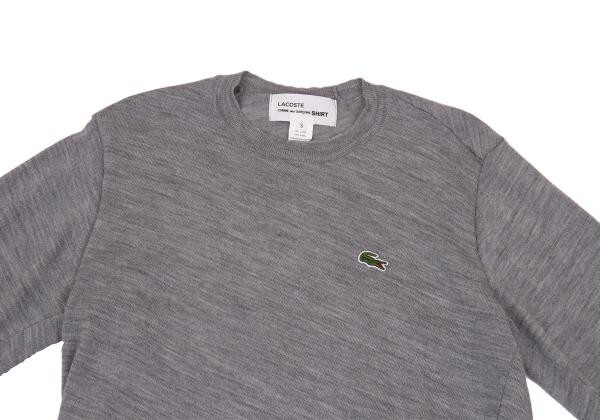 コムデギャルソン シャツ×ラコステCOMME des GARCONS SHIRT×LACOSTE ウール斜行ニット グレーS |