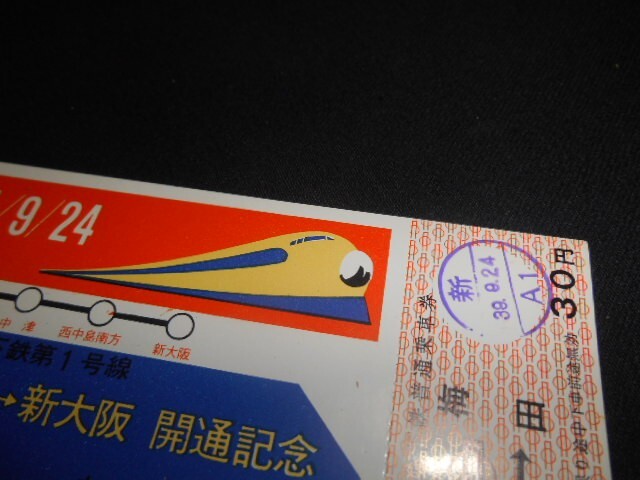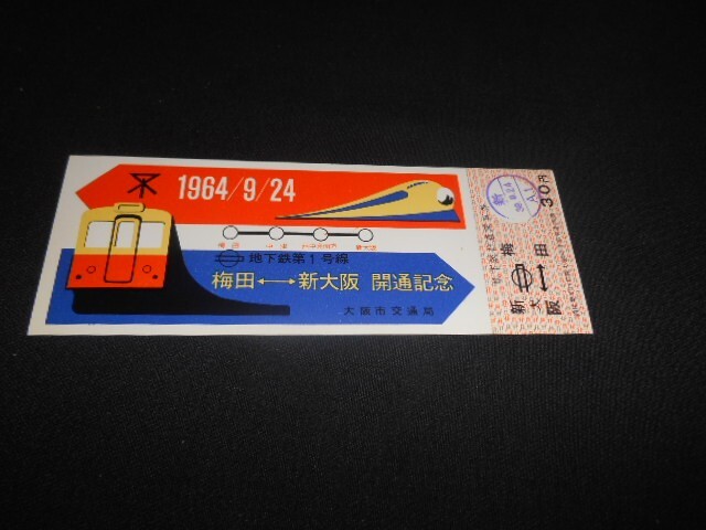 大阪市交通局 地下鉄 梅田⇔新大阪 開通記念記念乗車券 新大阪⇔梅田 30円 昭和39年 送料110円