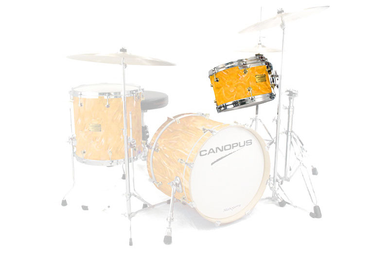 マホガニー+ポプラ+バーチの6plyにメイプルRFのシェル構成で、エッジトップに当るPlyにバーチ材を配置することで、音の輪郭をはっきりさせました。