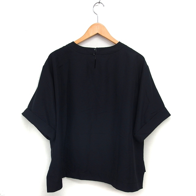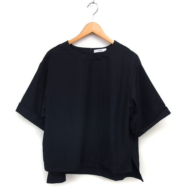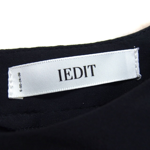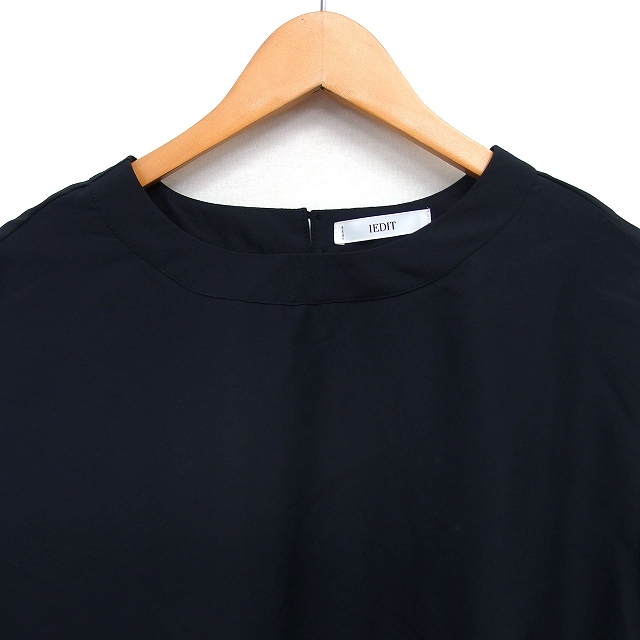 イディット IEDIT ボートネック カットソー ロールアップ 大きいサイズ スリット バックロング 五分袖 3L 黒 ブラック /NT11 レディース
