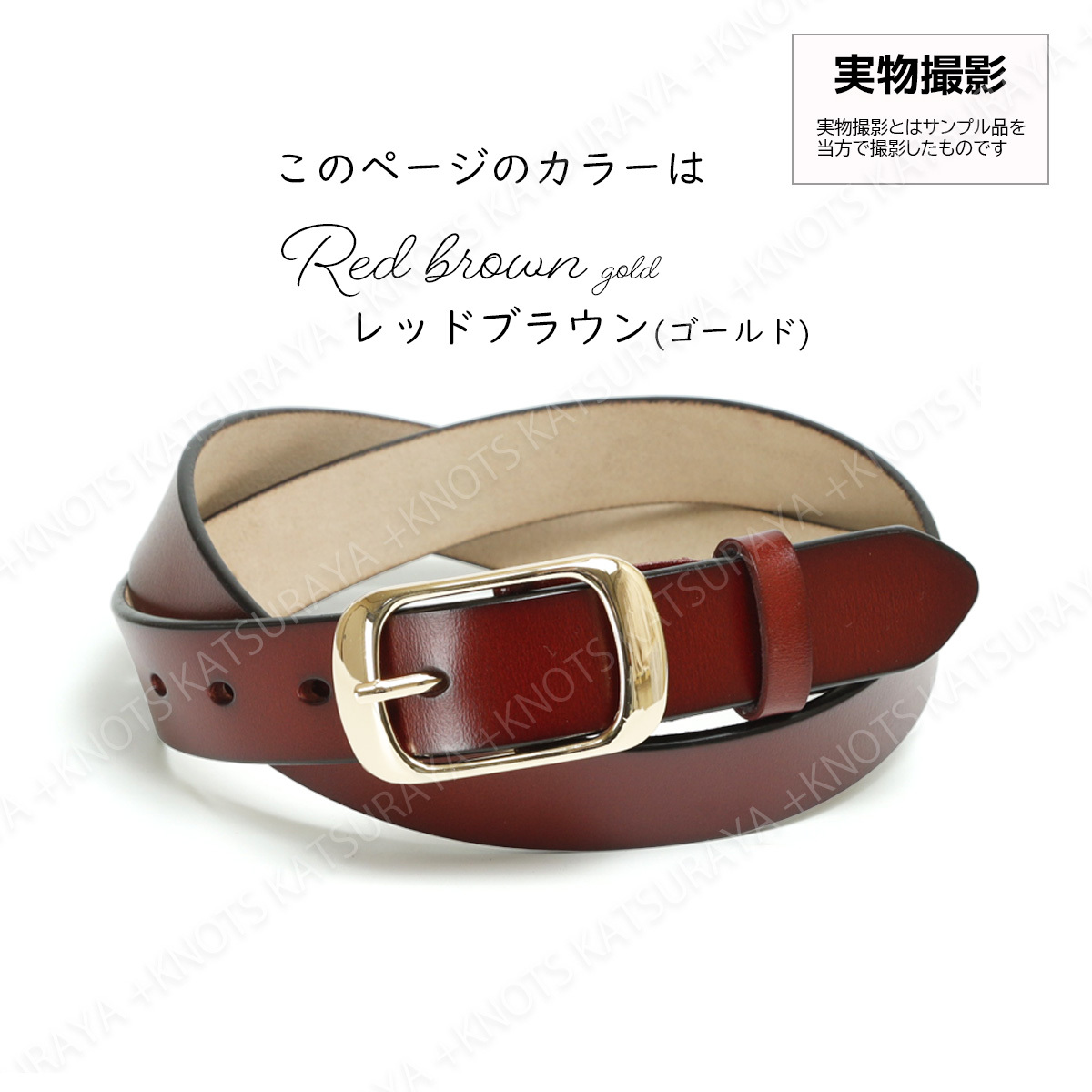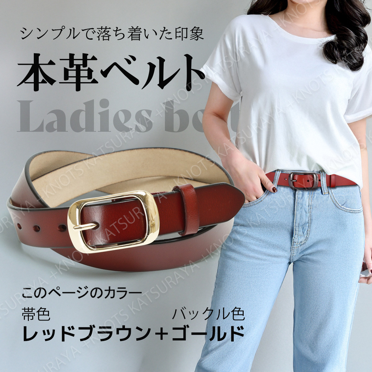 本革 レディース ベルト★レッドブラウン(ゴールド) 太い 太め 長さ調整 調節 牛革 レザー カジュアル シンプル ビジネスa113