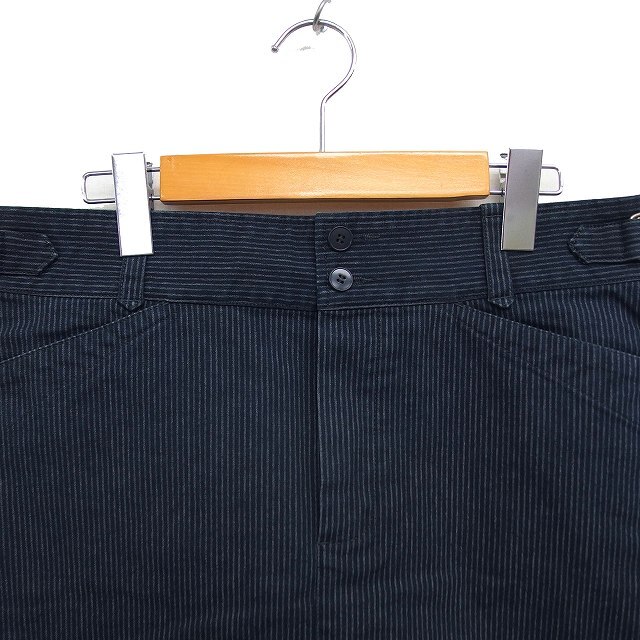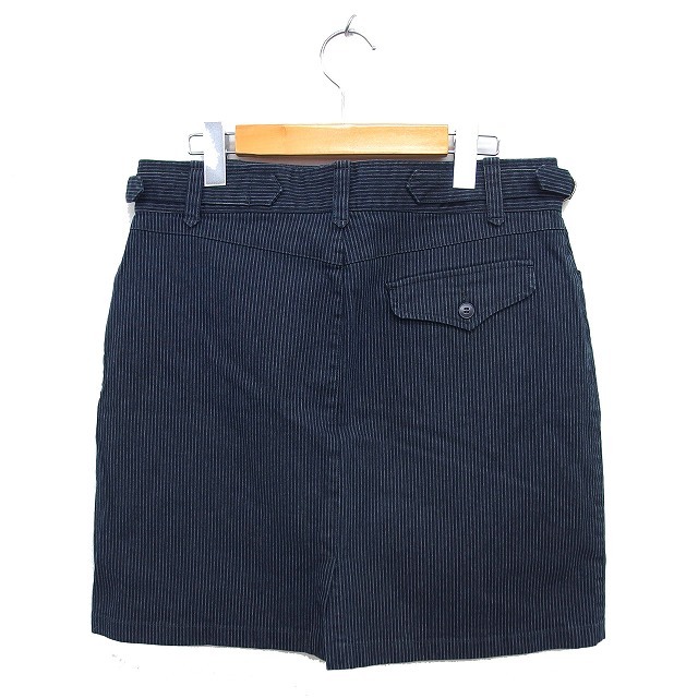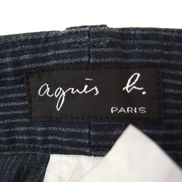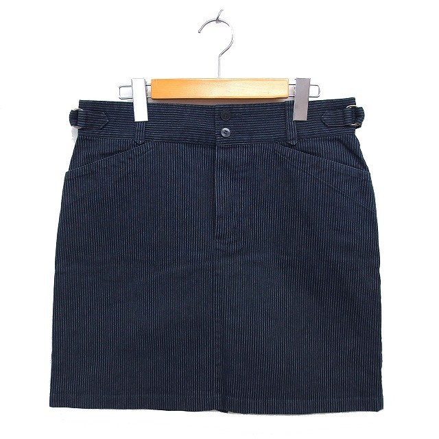 アニエスベー agnes b. ストライプ タイト ミニ スカート ボタンフライ コットン混 ベルト 40 紺 ネイビー /NT27 レディース