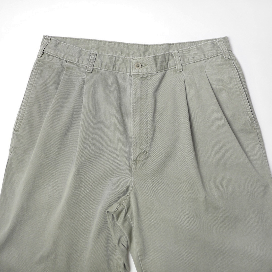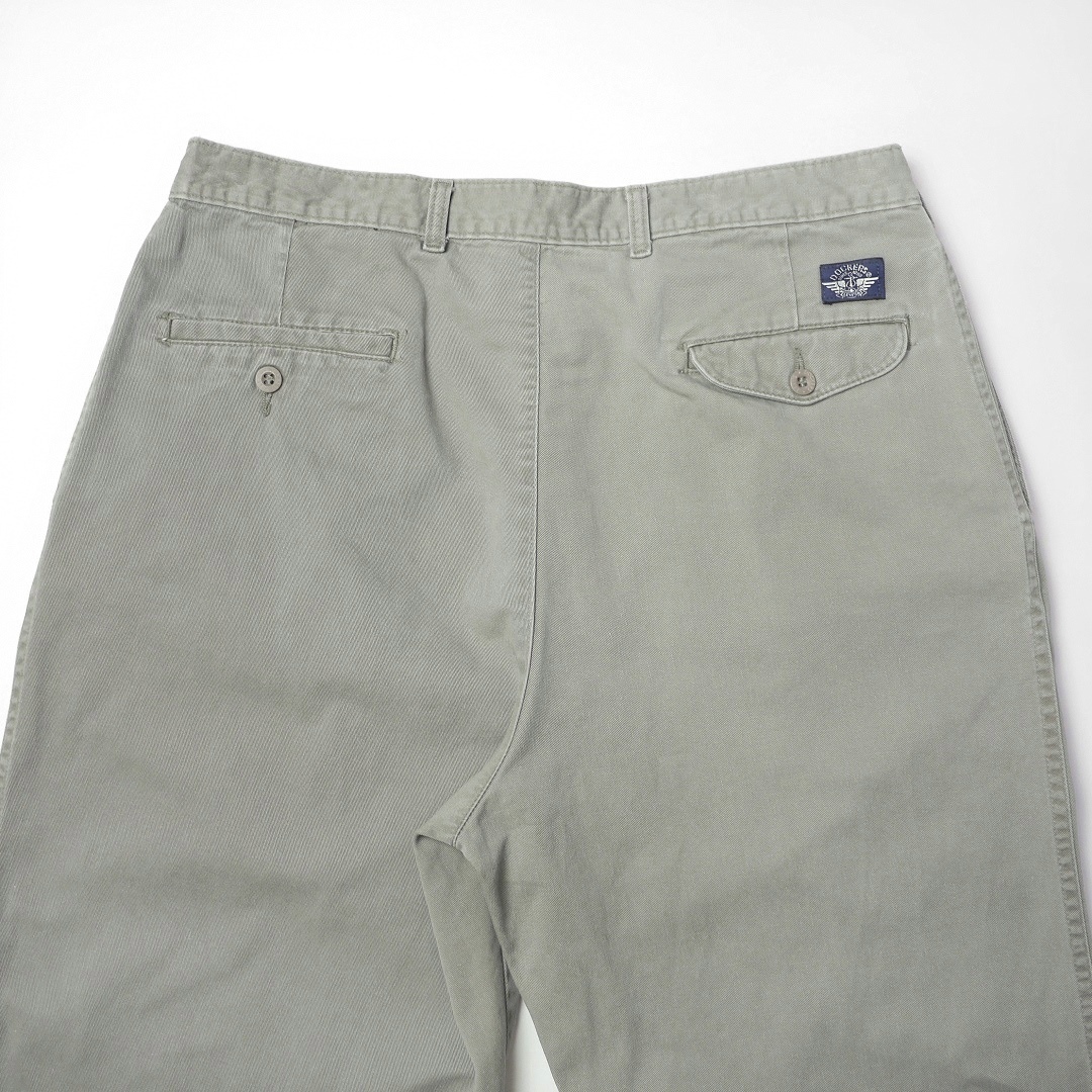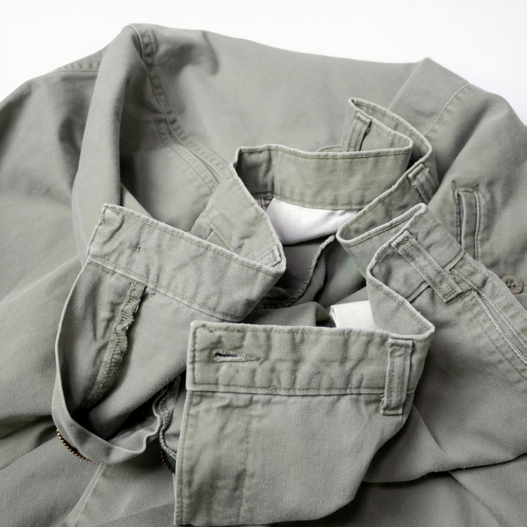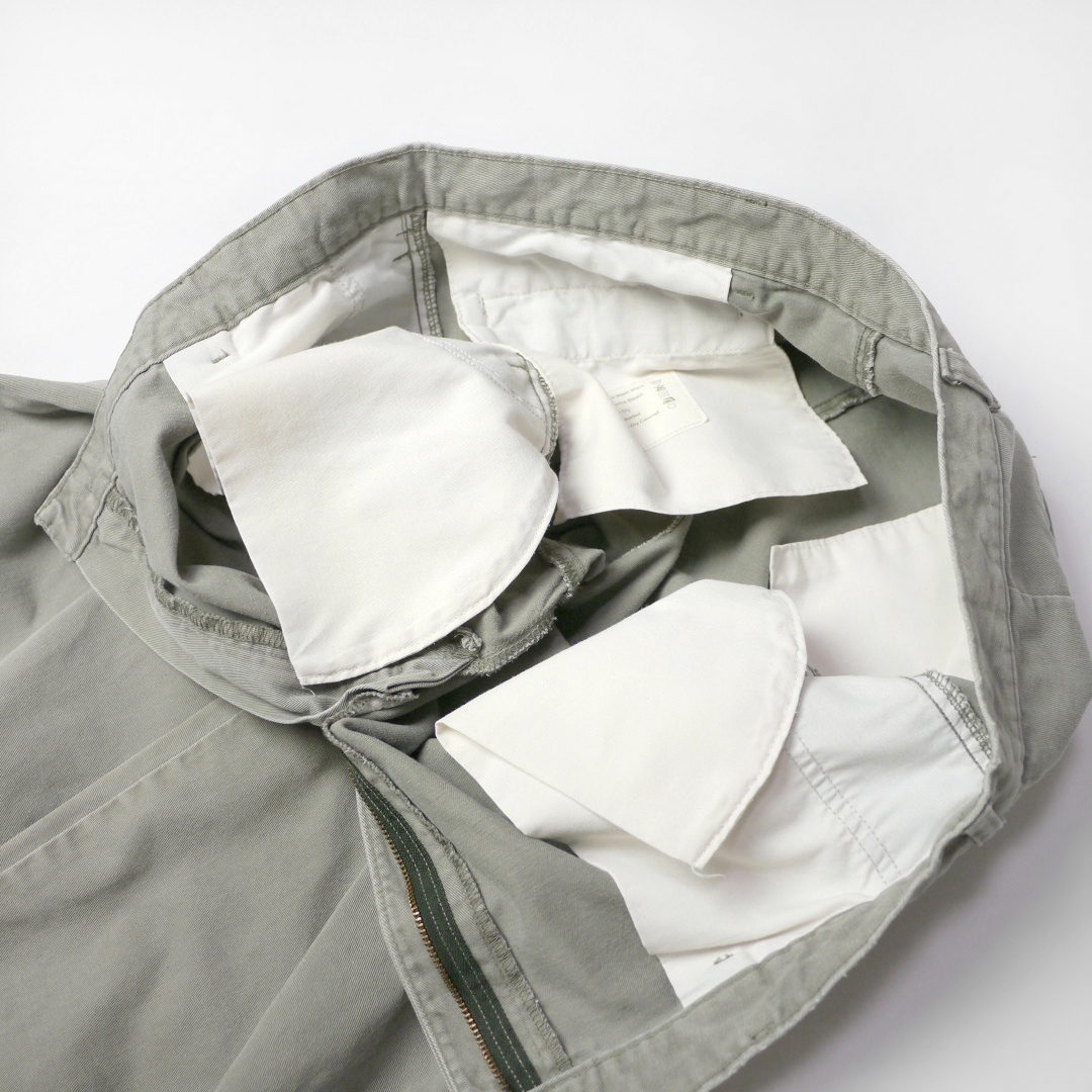 ■ブランド 80s-90s、LEVIS、DOCKERS、MADE IN USA、42TALON ZIP ■素材 100%COTTON ■カラー フェードグレー系、表現が難しいのですがくすんだ感じの灰色になります。 ジッパーテープがグリーンなので元々は薄緑色が混じったような色味だったと思われます。 ■詳細 アメリカで購入したリーバイス/ドッカーズのコットンツイルパンツです。 80年代-90年代(1990年製)、旧タグのアメリカ製でジッパーは42タロンジップになります。 生地はシッカリとしたオールコットン、シルエットはユッタリとしておりツータック入りのテーパードです。 イイ感じに雰囲気よく経年変化しております。 ■状態 コットン特有の色落ち、薄汚れ、フェード、アタリ、スレ、ウェストレーンフチに多少の摩耗、モモやインシームに薄めの線あと(保管によるたたみ焼け?薄汚れ?)、薄めのセンターシームあとあり。 着用に問題あるダメージはなく良好です。 ■サイズ 表記 W36 L34 (実寸W34.5 L32.5 *下記参考下さい) ウェスト 44cm×2 股下 83cm 総丈 112cm 裾幅 22cm 股上前 32cm 股上後 43cm ワタリ 37cm ヒップ 55cm-60cm ■注意事項 状態は細かく確認しておりますが、傷や汚れの見落とし、実寸誤差、色味差異など生じる場合がございます。 不明な点がありましたら入札前にご質問下さい。 商品にあわせて洗濯やクリーニングメンテナンスを施しておりますが、ビンテージやアンティークなど中古品になりますので特性のご理解をお願いします。 |