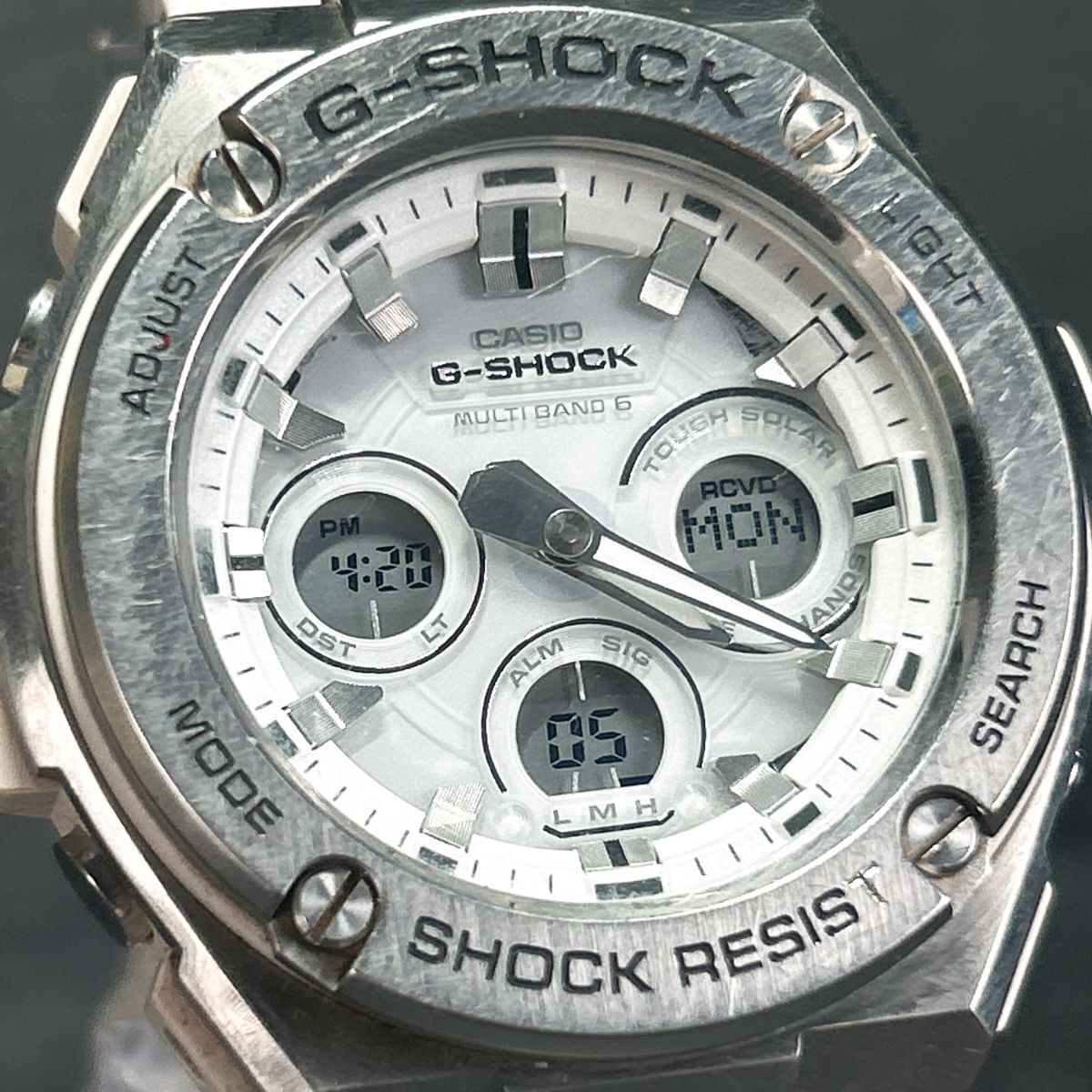 美品 CASIO カシオ G-SHOCK ジーショック G-STEEL GST-W310-7AJF 腕時計 タフソーラー 電波ソーラー アナデジ ホワイト 多機能 動作確認済