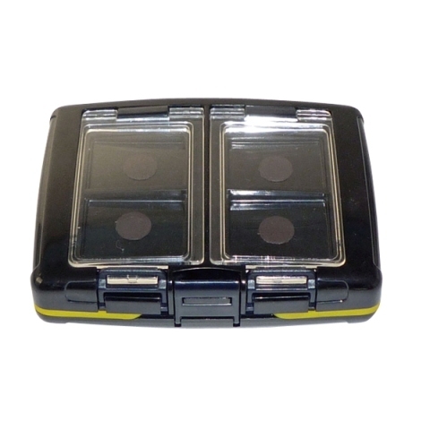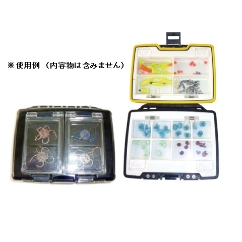 【特徴】 ●表面はマグネット付きで4コマ・クリアのフタで針を収納するのに大変便利です●内面は、シモリ玉・カラマン棒、ガン玉等を仕分けして収納可能です●しっかりしたロックとパッキン入りで、雨シブキから守ります