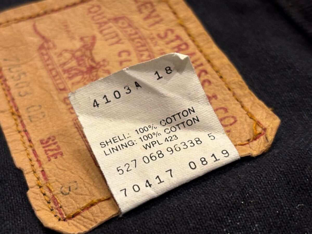 USA製 80s 90s LEVI'S ブラック デニム トラッカー ジャケット 70503 02。