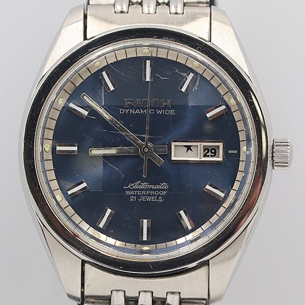 デッドストック級 リコー ダイナミックワイド 041225AB デイデイト 21石 青文字盤 AT メンズ腕時計 OGH 9055ABC5837000