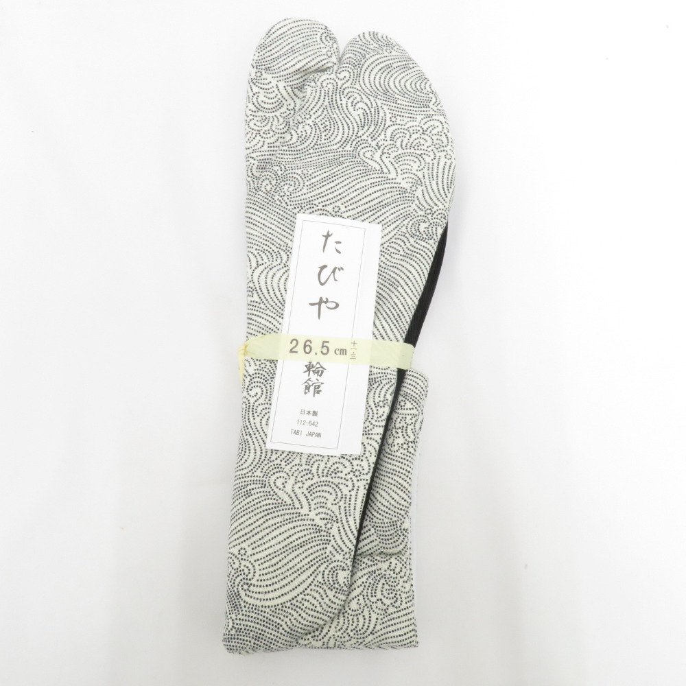 | 男性用 柄足袋 26.5cm 白色 波柄 底面黒色 日本製 たびや 一輪館 綿100% 4枚こはぜ メンズ 足袋 カジュアル 新品 |