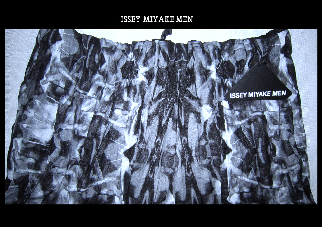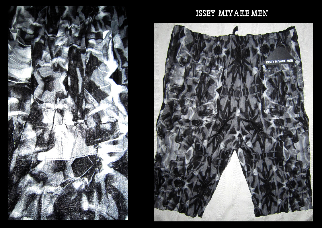 ★未使用三越購入ISSEYMIYAKE MEN2014リバーシブル黒×黒白手絞りプリーツ加工短パンツサイズ1★