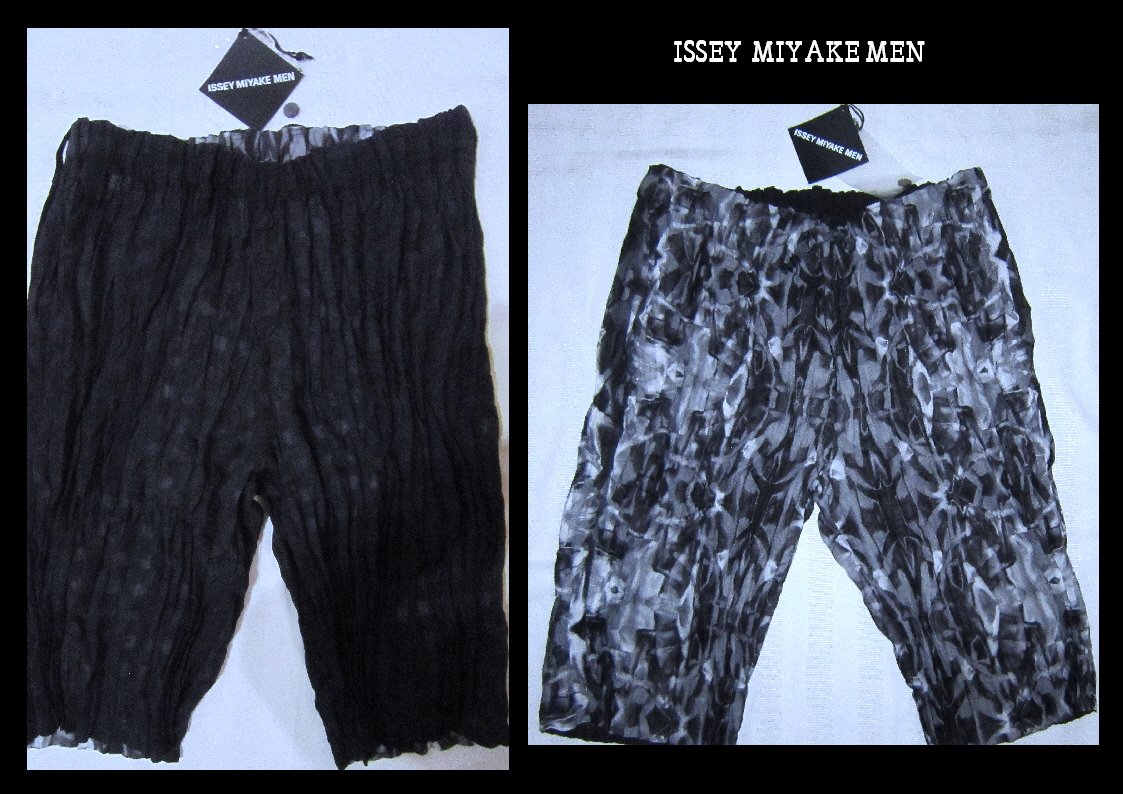 ★未使用三越購入ISSEYMIYAKE MEN2014リバーシブル黒×黒グレー白手絞りプリーツ加工短パンツサイズ1★HOMMEPLISSEオムプリッセA-POCABLE