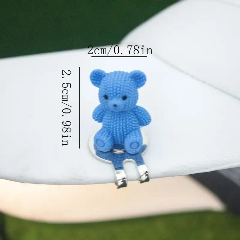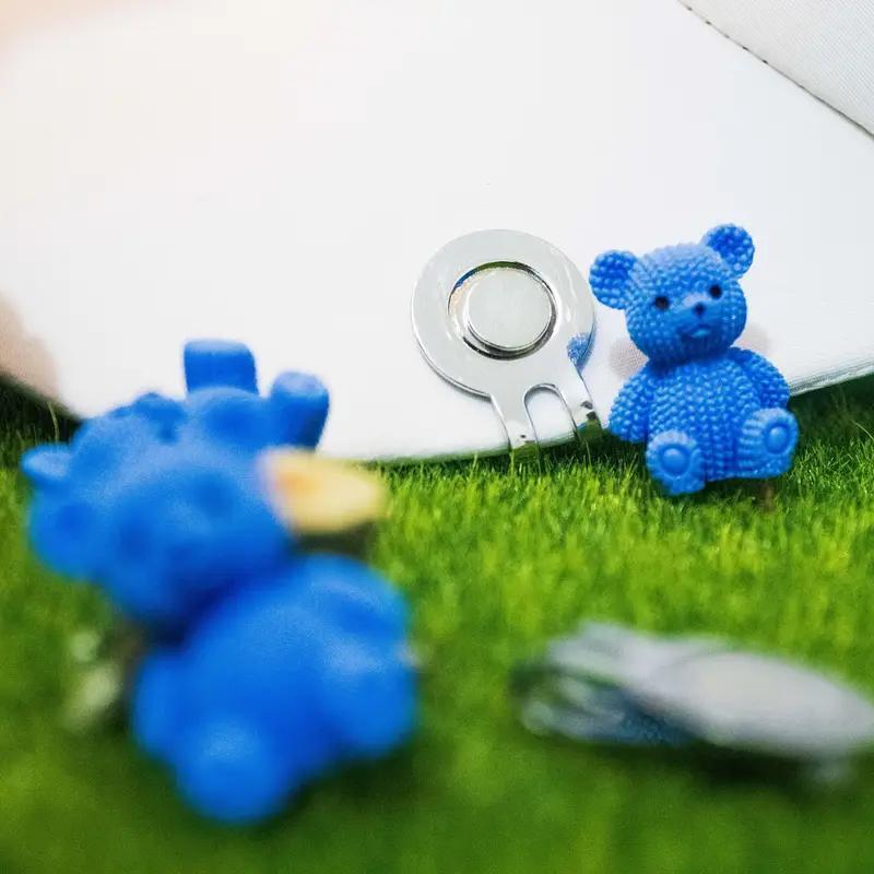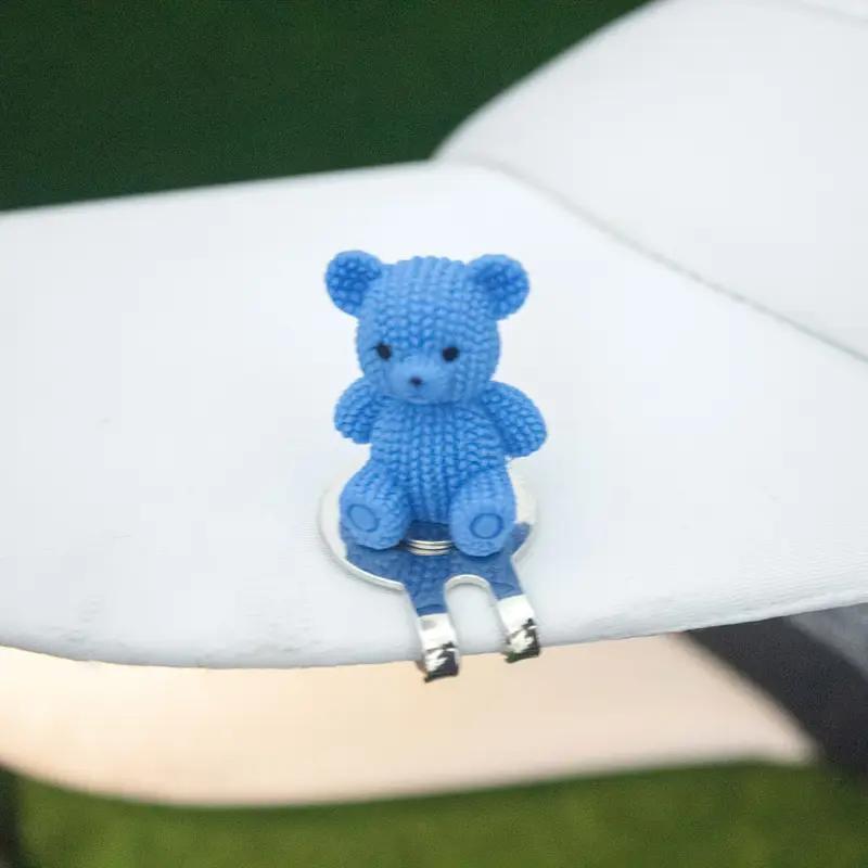かわいい青いクマのデザインが特徴のゴルフボールマーカーです。 キャップのツバや帽子に簡単に取り付けられるマグネット式で、プレー中のマーカー使用に便利です。 【商品詳細】 サイズ:約2.5cm × 2cm 主な素材:樹脂(クマ部分)、金属(クリップ部分) カラー:ブルー 状態:新品・未使用 【ポイント】 キュートなクマデザインで目立つので、グリーン上で探しやすい マグネット式で取り外し簡単 ゴルフ仲間へのプレゼントにも最適 ※画像にてサイズ感・デザインをご確認ください。