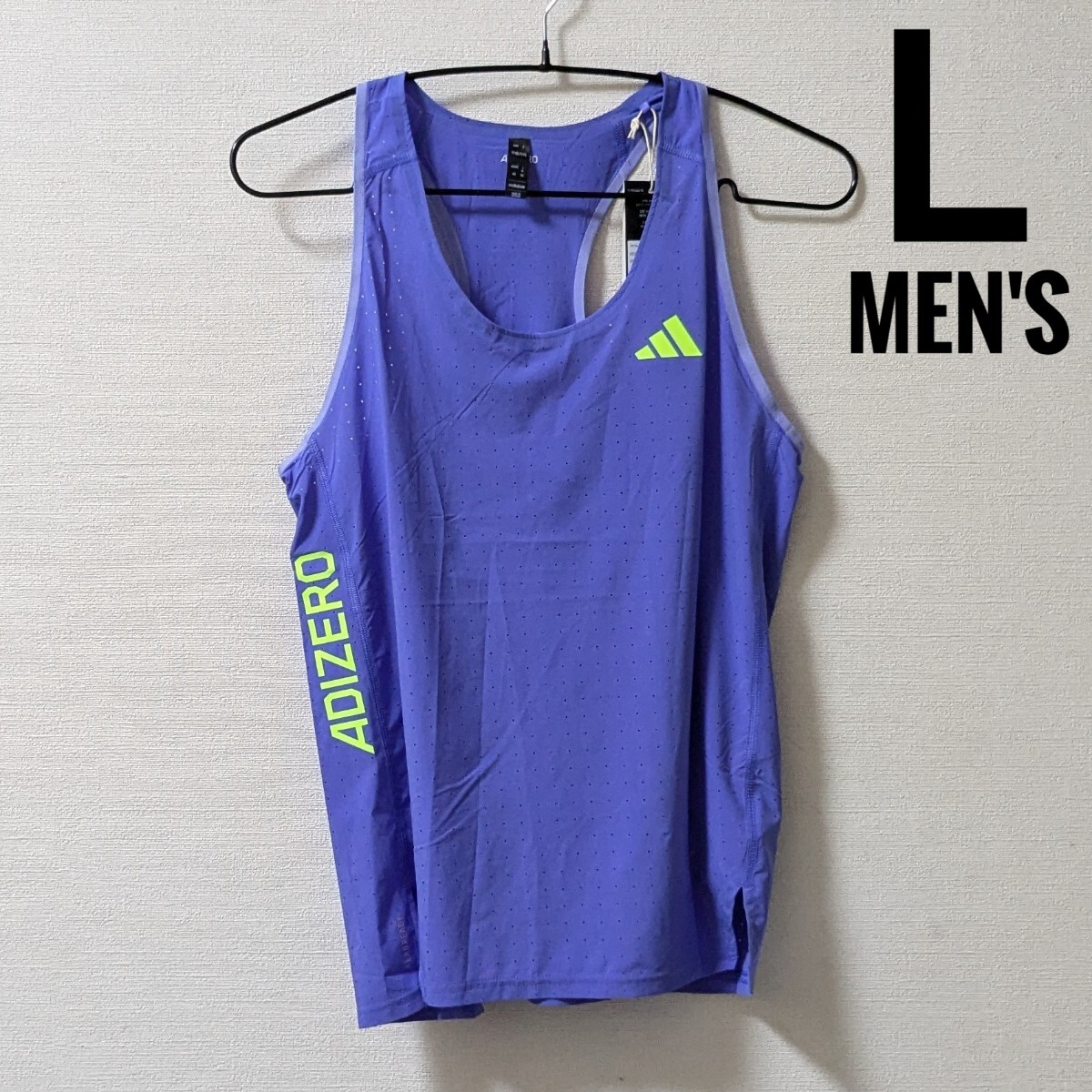 新品 L Adidas Adizero ランニング シングレット アディダス アディゼロ JTI93-IX2810 セミコバルトブルー タンクトップ マラソン 陸上
