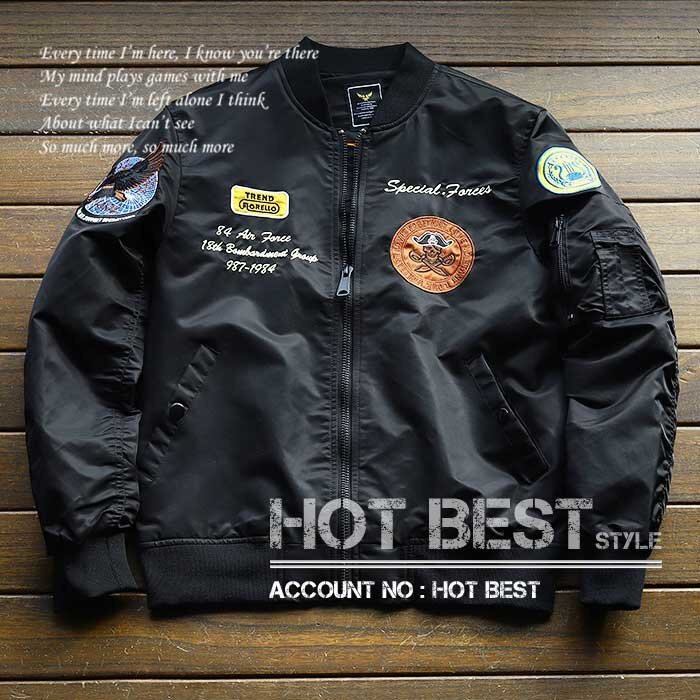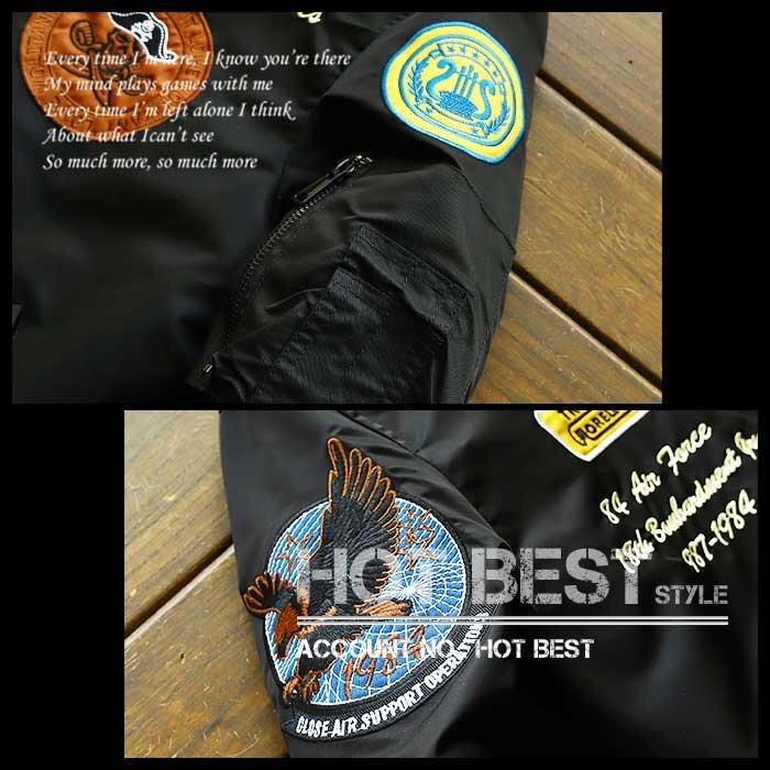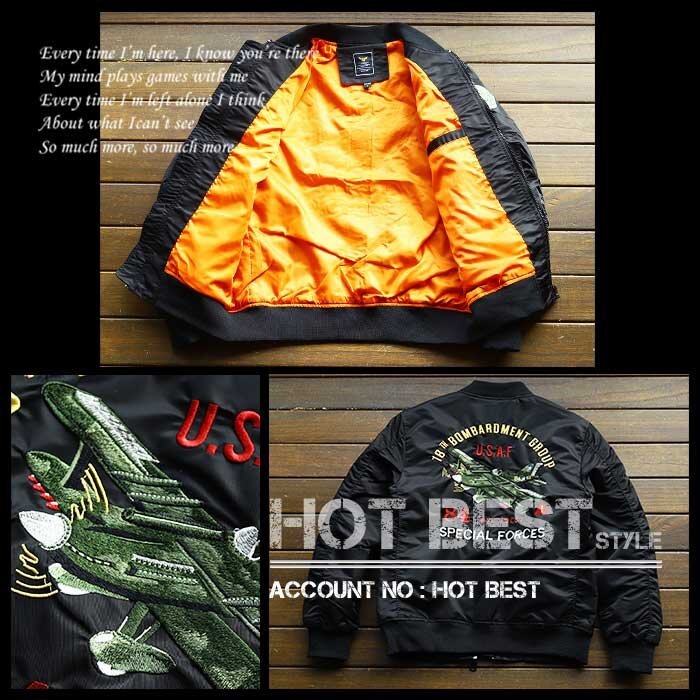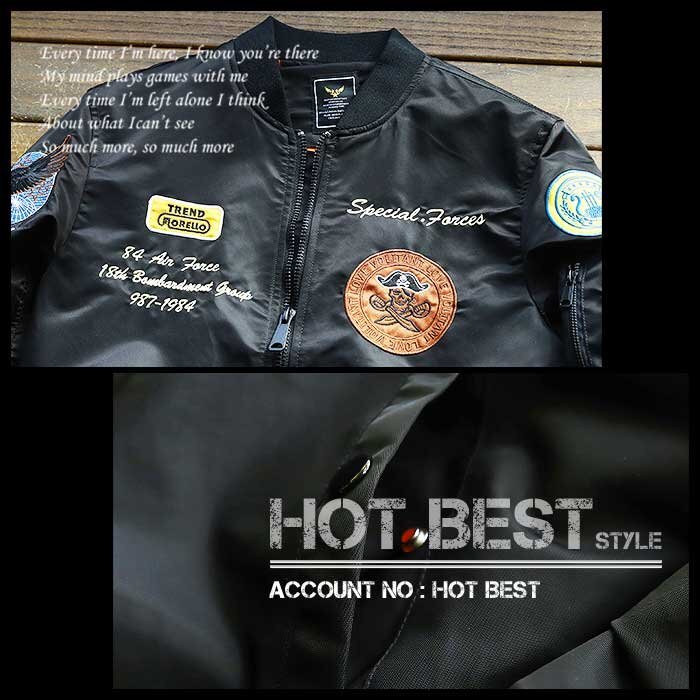 G.GABRIEL 大人気!!メンズ USA 高級ワッペン ブルゾン 豪華刺繍 ミリタリー US フライトジャケット MA-1 軽量 ブラック 3674/表記2XL