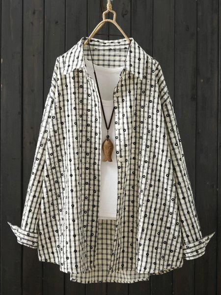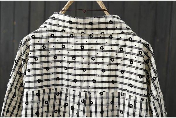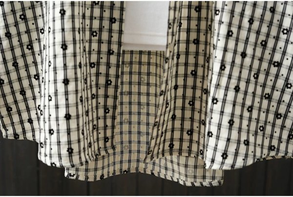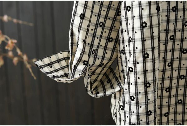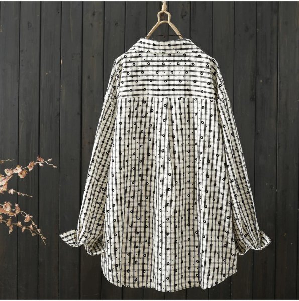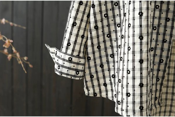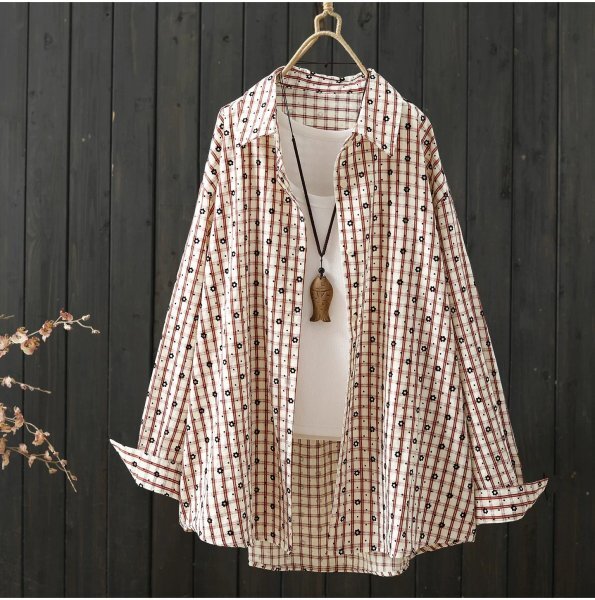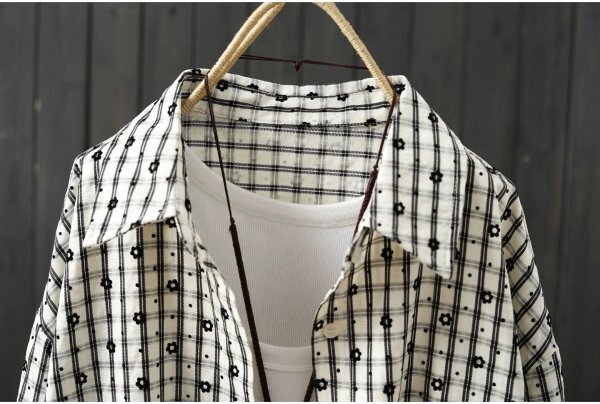 zy カーディガン ゆったり フリーサイズ ワイシャツ チュニック トップス 綿混 大人可愛 チェック柄&花柄1