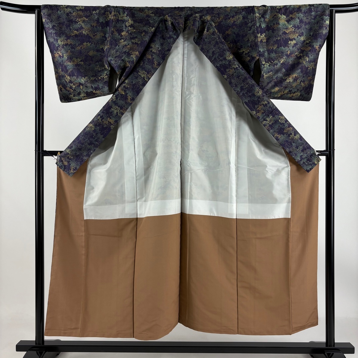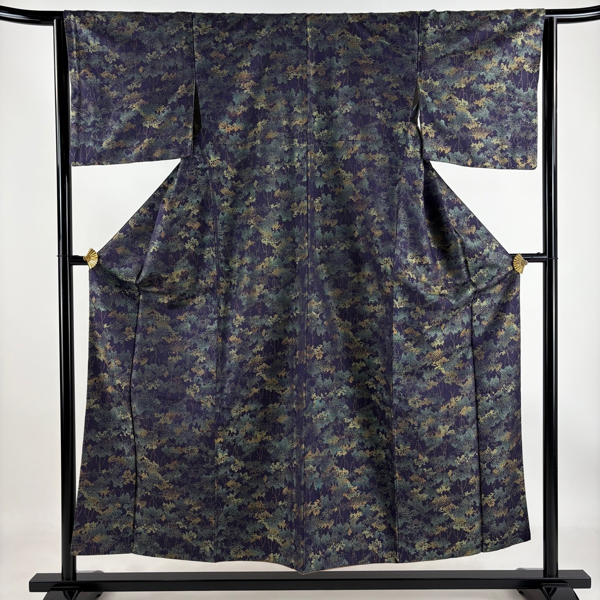 | 紬 秀品 樹木 濃紫 袷 身丈152 裄丈64 M 正絹 【中古】 |