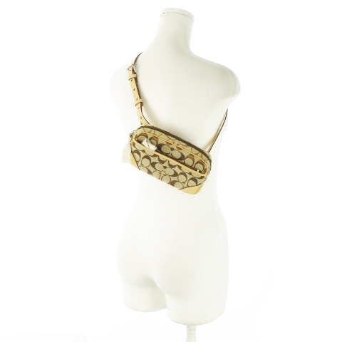 未使用品 コーチ COACH HMP SIG HIP BAG ショルダーバッグ ヒップバッグ ボディバッグ キャンバス レザー 革 シグネチャー ベージュ