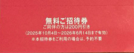 ※本招待券をご利用の場合、予約不要