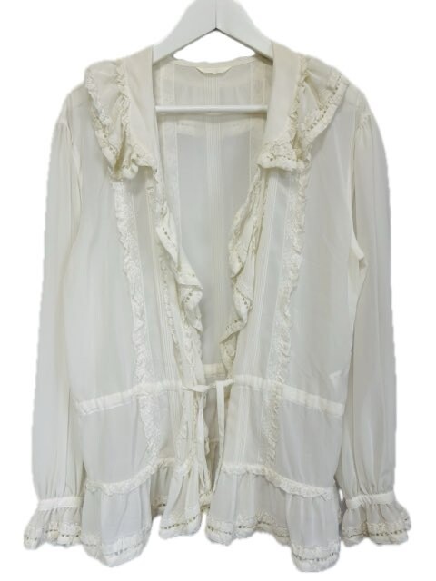 インゲボルグ INGEBORG オーバー ブラウス カーディガン ポリ レース ピンタック オフホワイト 白 長袖 トップス レディース