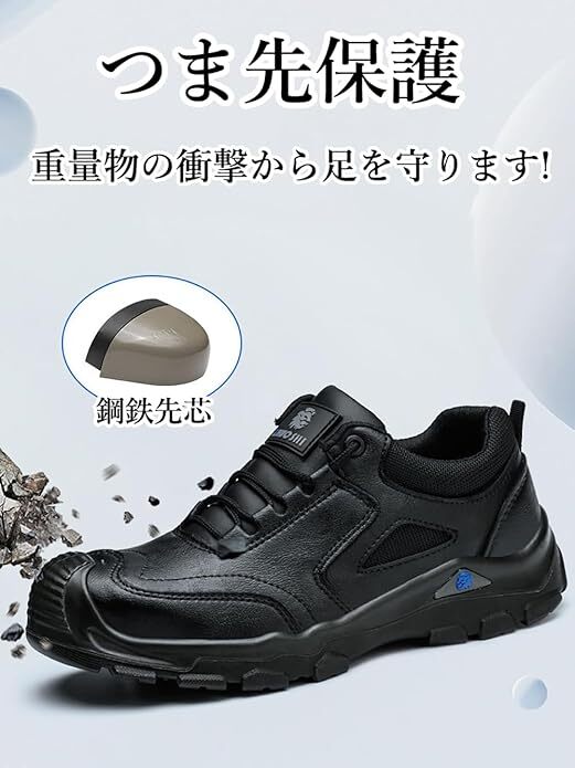 安全靴 あんぜん靴 革 防水 軽量 釘踏み抜き防止 鋼鉄先芯入り ローカット耐油 耐摩耗 サイズ:27.5cm