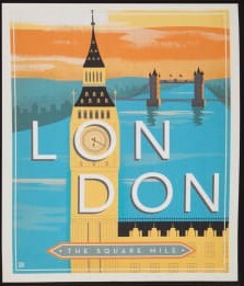 USAコットン ロンドン テムズ川 ビッグベン 52×43 パネル生地 d プリント生地 はぎれ アメリカ