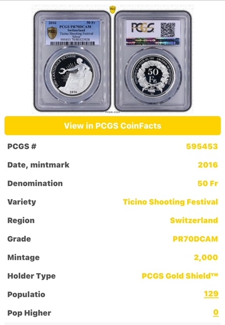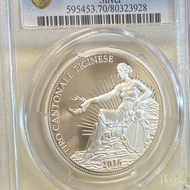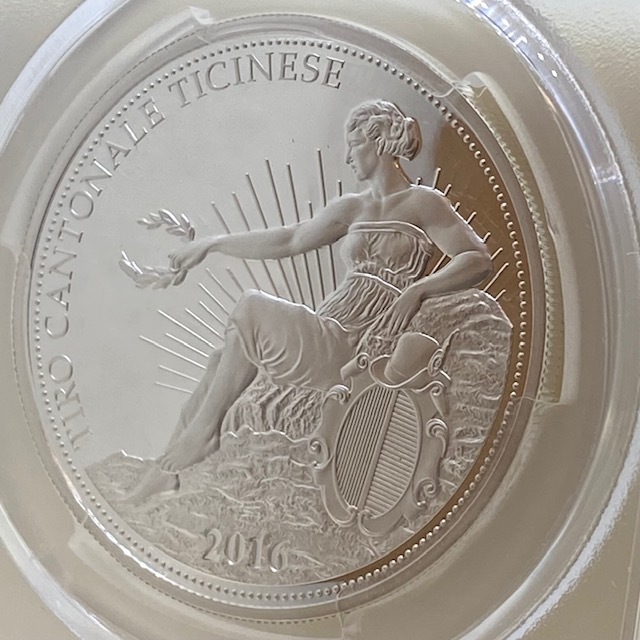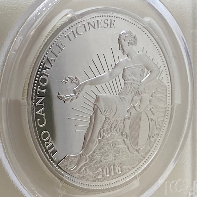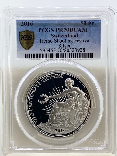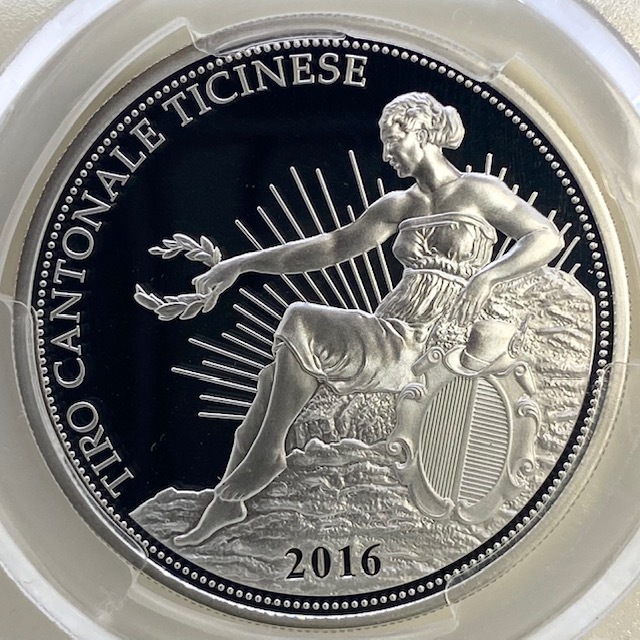 雲上の女神を彷彿 最高鑑定! 2016年 スイス 連邦 射撃祭 ティチーノ 50フラン プルーフ 銀貨 PCGS PR70 DCAM シルバー 完全未使用 現物資産