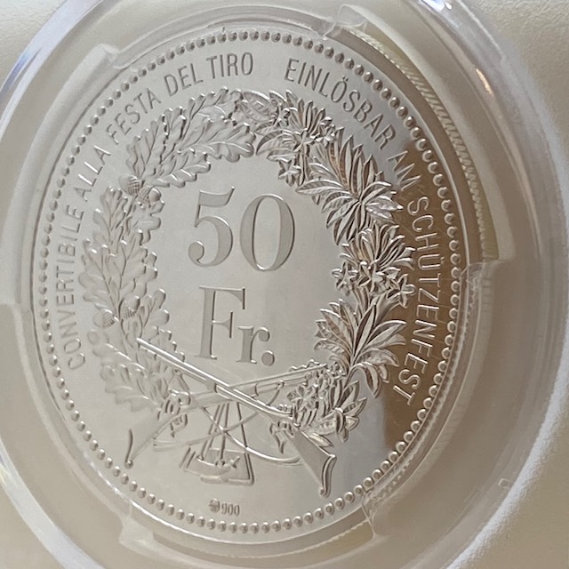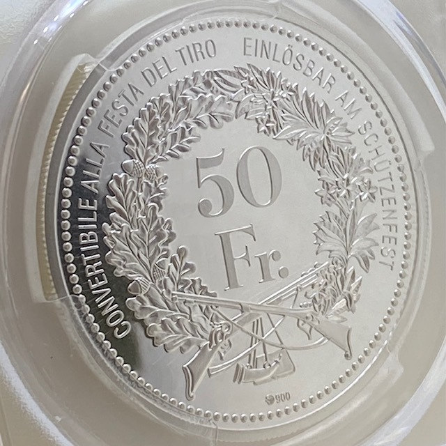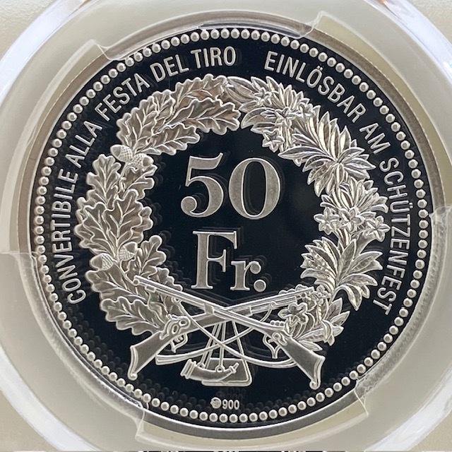 2016年スイス連邦射撃祭(ティチーノ:Ticino)の50フラン銀貨(プルーフ)は、スイスの伝統的な「射撃祭(シュッツェンフェスト / Schtzenfest)」を記念して発行された記念銀貨です。