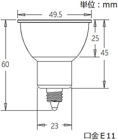全光束: 550-600lm、色温度: 2300K濃い電球色相当、従来のハロゲン電球50W-60W形相当。