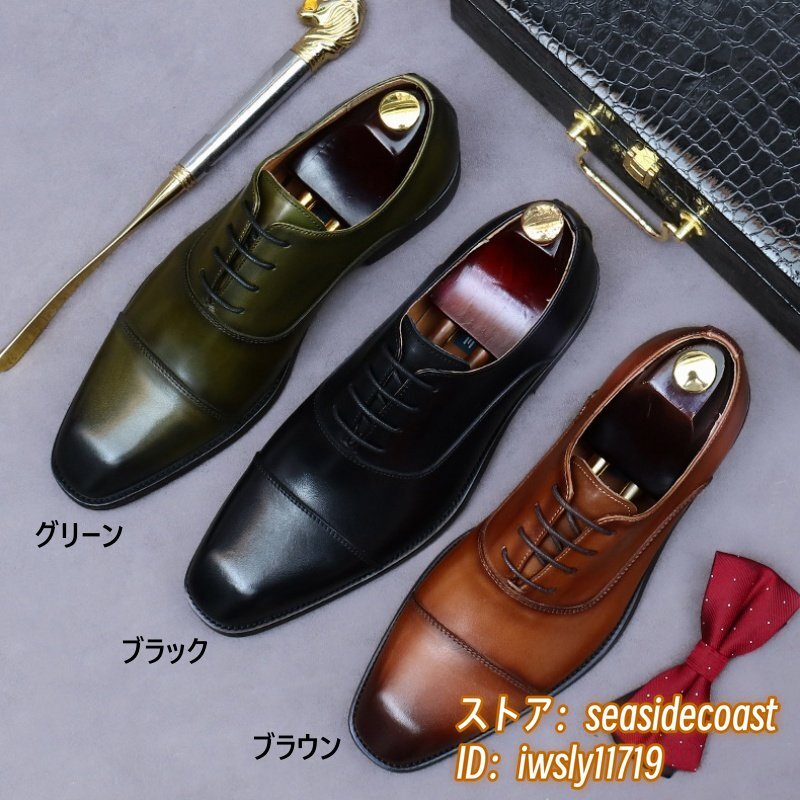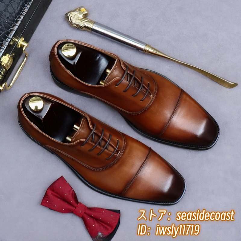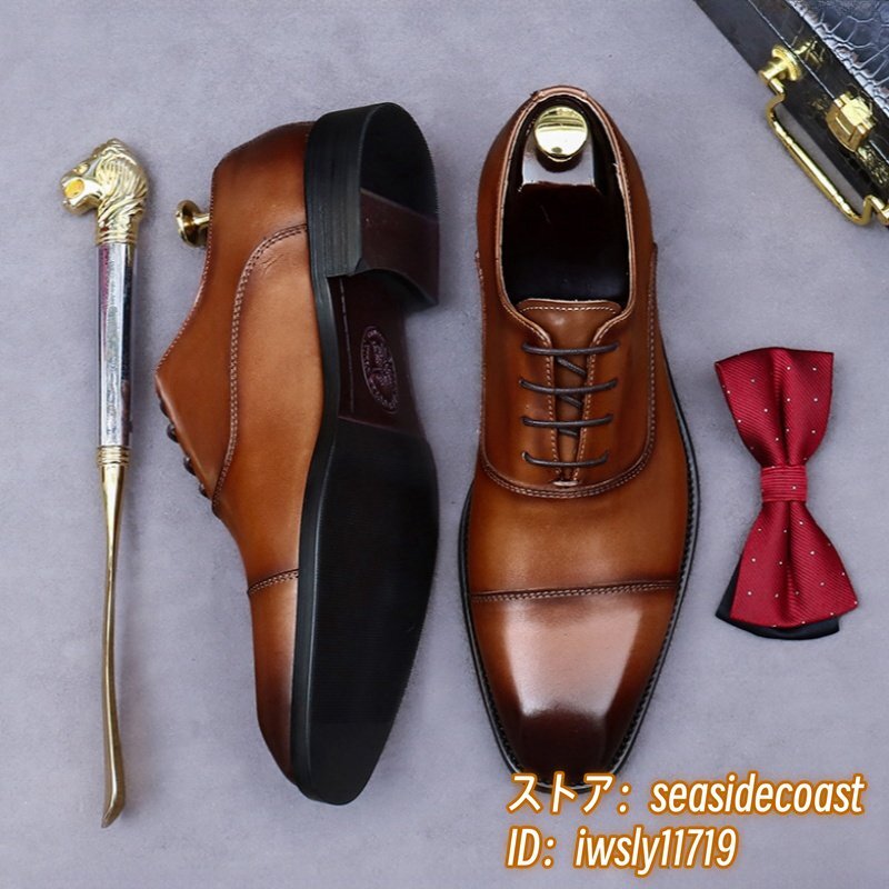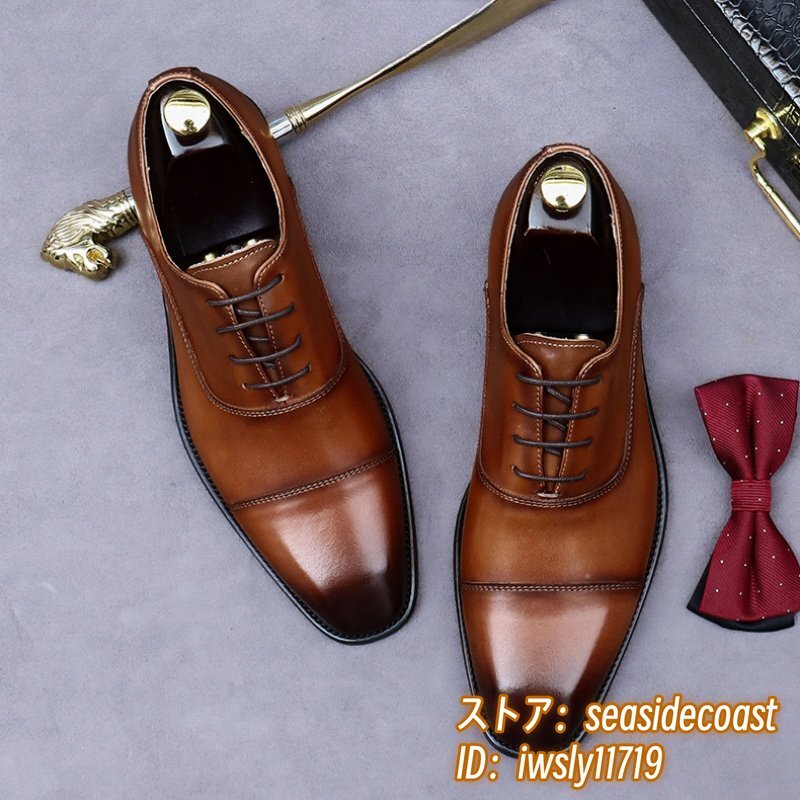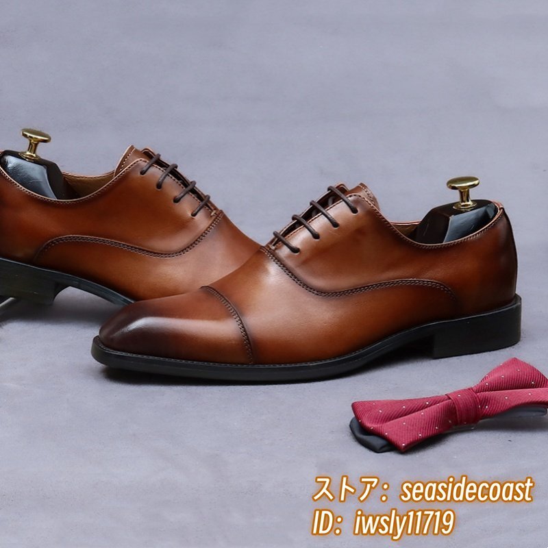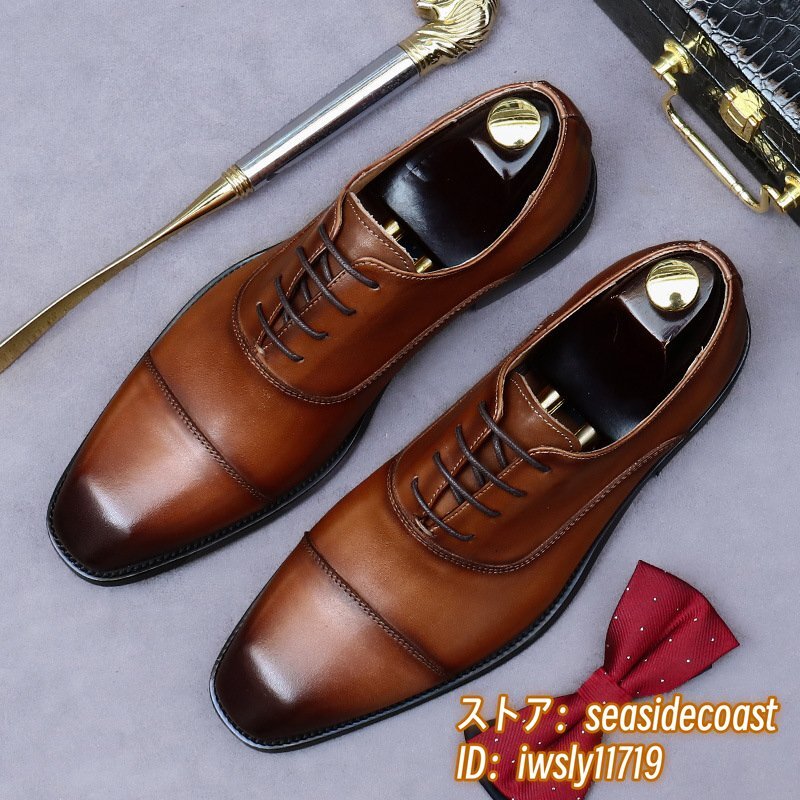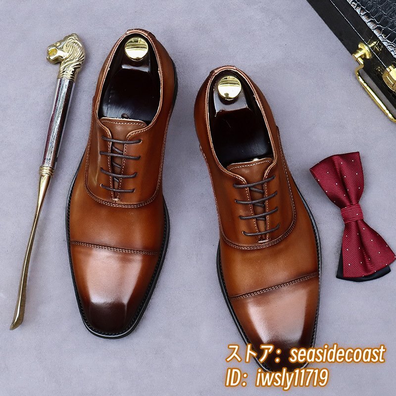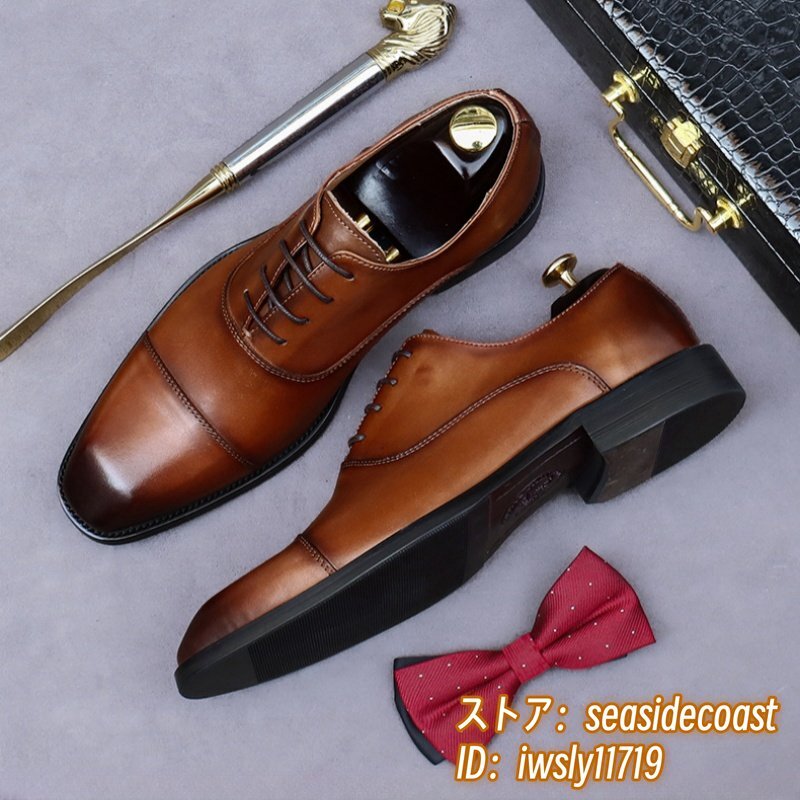 最高級★定価9万超 ビジネスシューズ メンズ 本革 レザーシューズ 超希少 紳士靴 職人手作り 革靴 牛革 フォーマル 結婚式 ブラウン 24.5cm