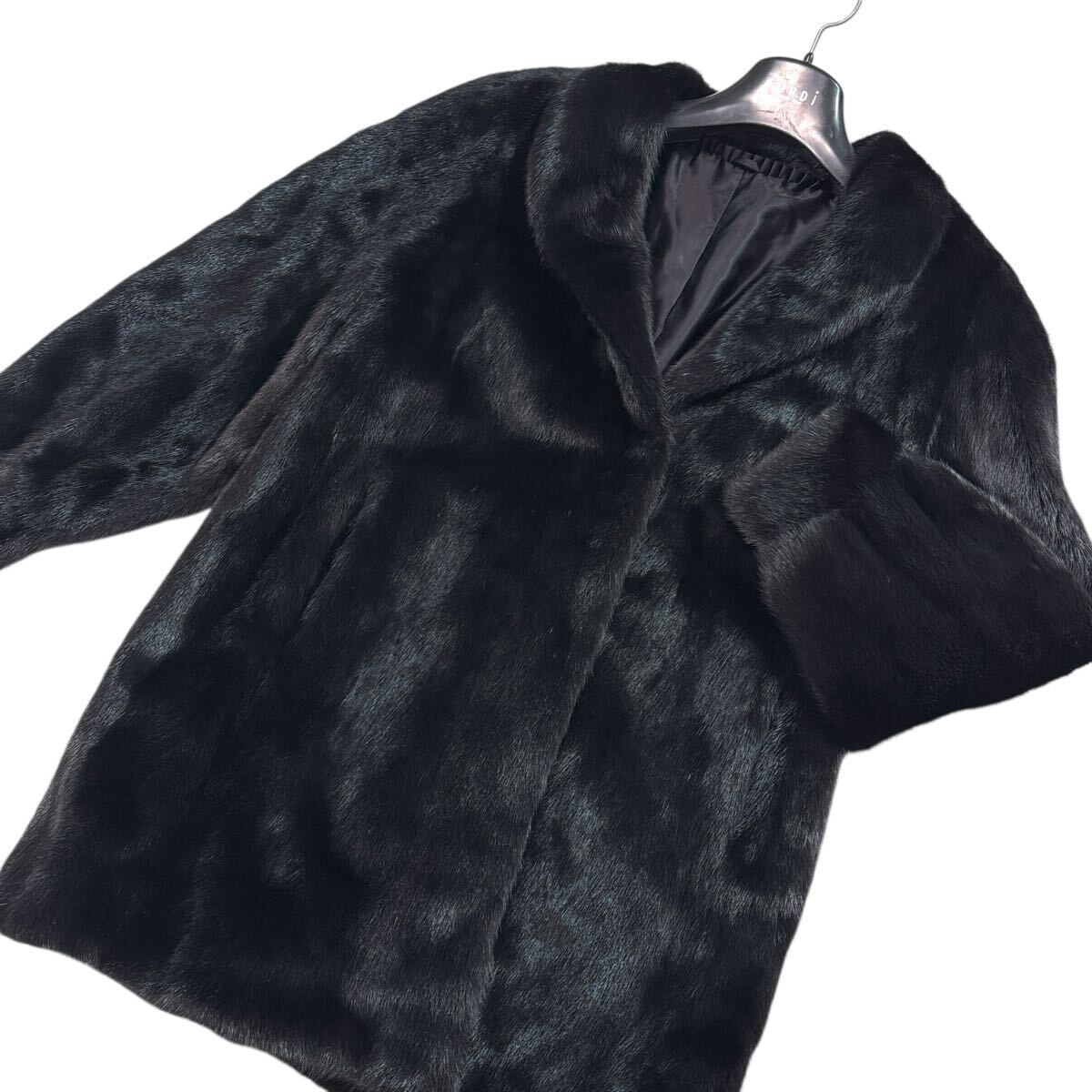 なめし超柔らか◎SAGA MINK サガミンク ダーク ハーフコート 本毛皮 リアルファー 貂 レディース 艶◎毛並み◎ボリューム◎KA157