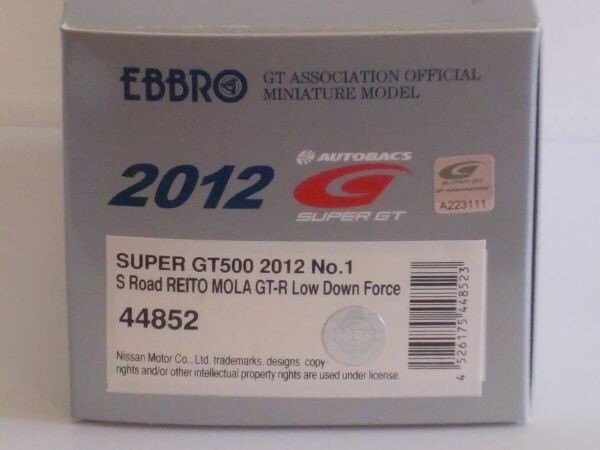 ○1/43 EBBRO SUPER GT 500 2012 No.1 S Road REITO MOLA GT-R Low Down Force 銀です。箱に少し痛みがありますので、ご了承の上入札下さい。商品の状況は写真でご判断の上、ノークレーム・ノーリターンでお願いします。保証はできませんが、定形外郵便での発送も可能です。