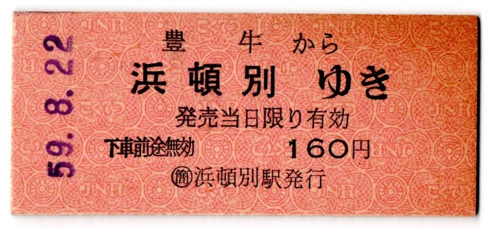 興浜北線 豊牛から浜頓別ゆき 160円 (簡)浜頓別駅発行