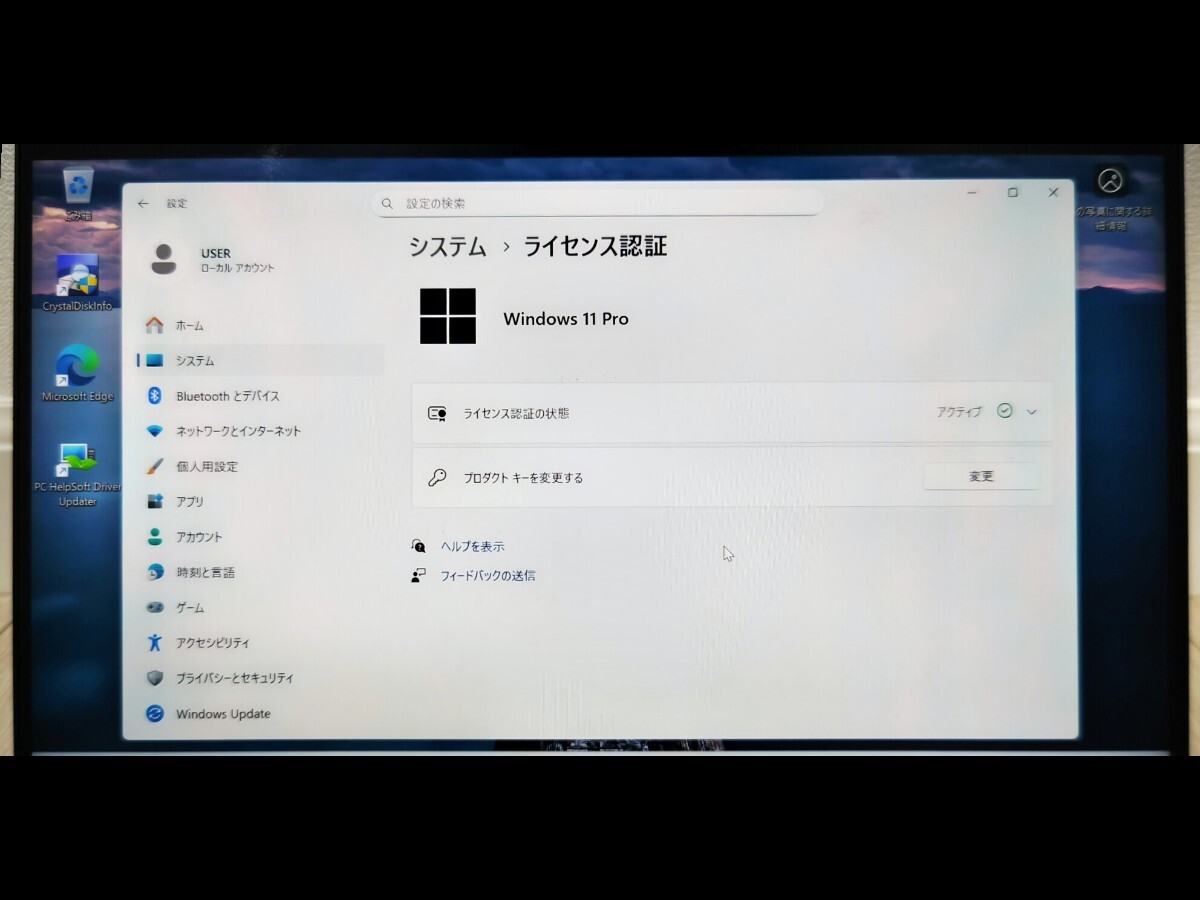 プロダクトキーは本体内蔵のもので認証されております。