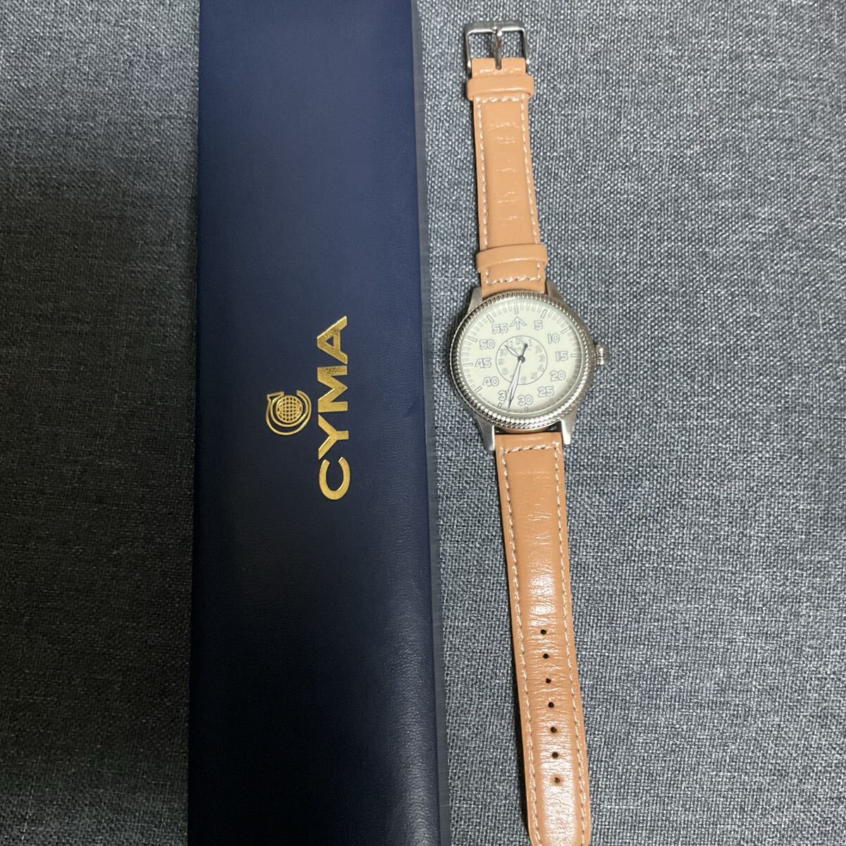 CYMA シーマ P14600 アナログ 白文字盤 革 レザーベルト