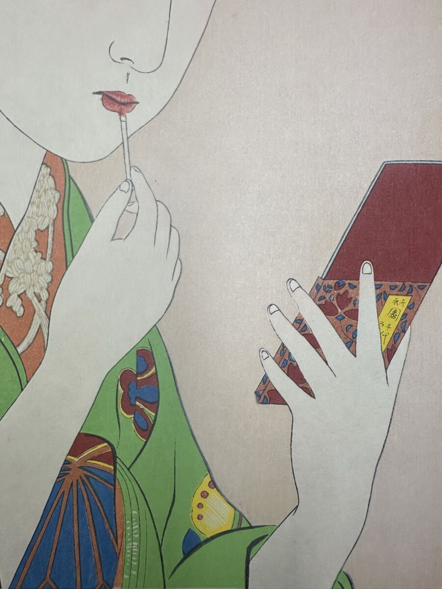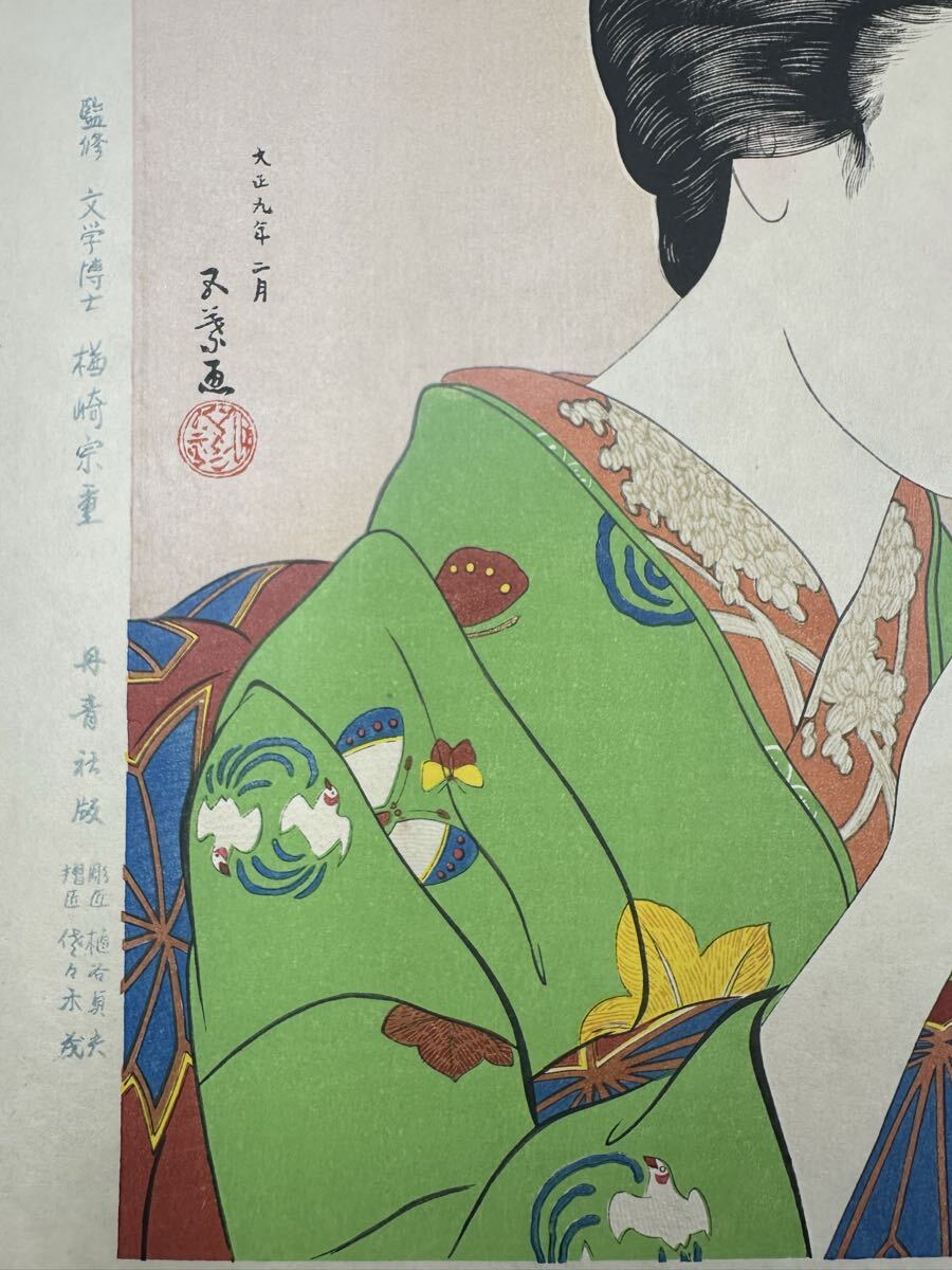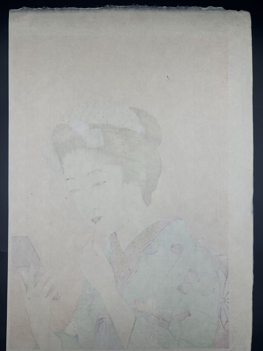 【真作】大正期 浮世絵木版画 橋口五葉「紅筆を持てる女」美人画 大判 錦絵 保存良い