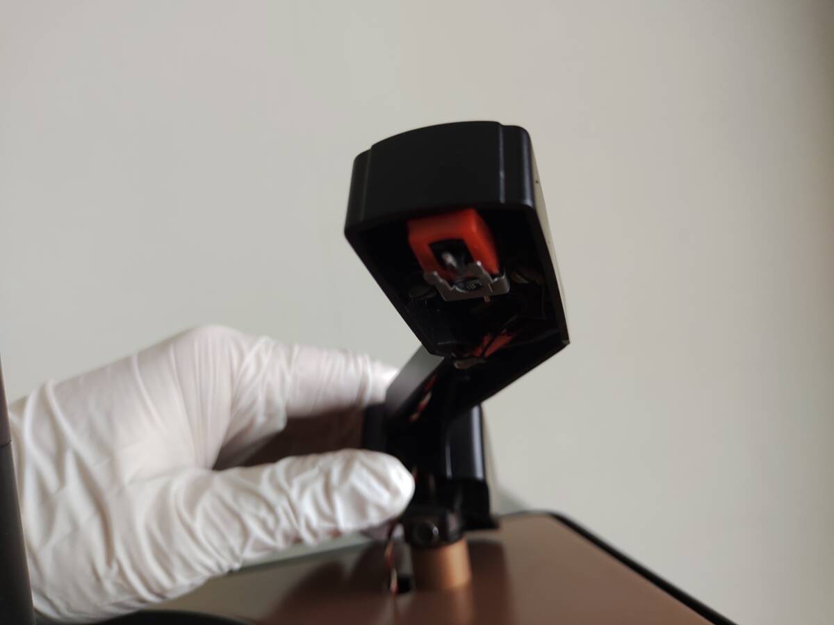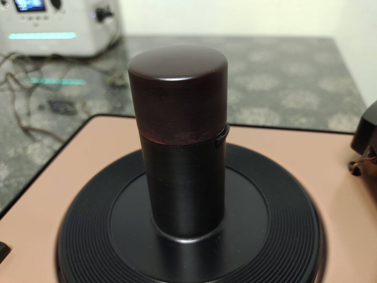 *以前の所有者が外装を再塗装したようですが、レコードを搭載する軸が塗装で厚くなってしまい、そこをヤスリ掛けした様子が見えます(写真7枚目)。